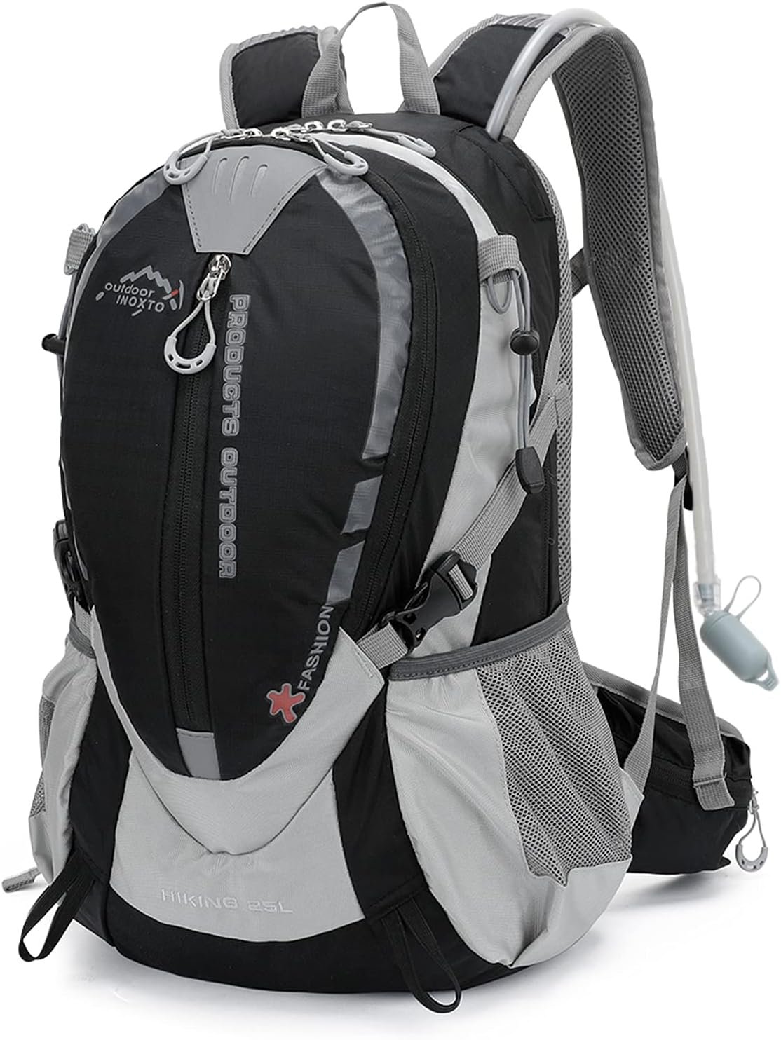 INOXTO Small Hiking Backpack with 2L Water Bladder and Rain Cover, 25L Hydration Backpack Hiking Daypack (Black)