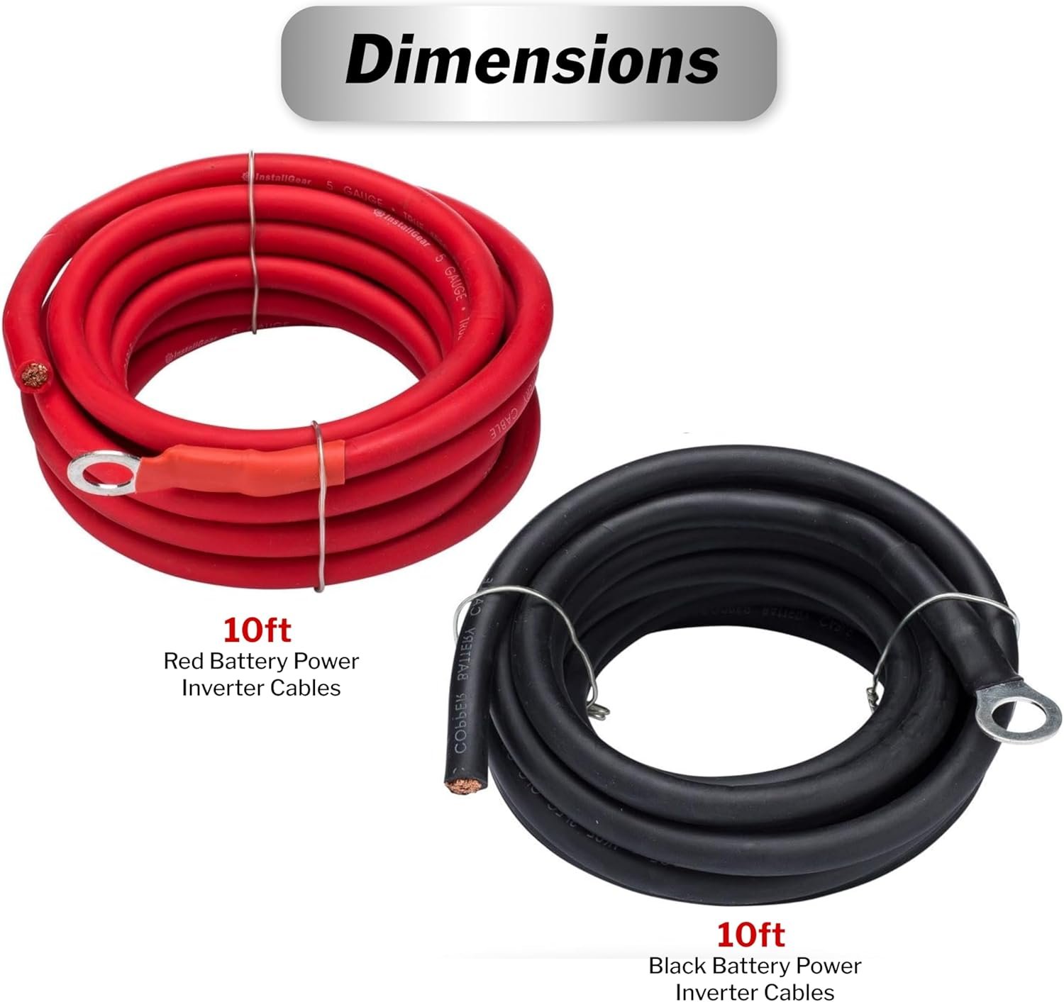 InstallGear AWG 5 Gauge 10ft Battery Power Inverter Cables – 2ct Red/Black Battery Cable for Solar, Auto, RV and Marine, Lawn Mower – 99.9% Deoxigenized Copper, Set – Battery Cable Wire – Battery Wire