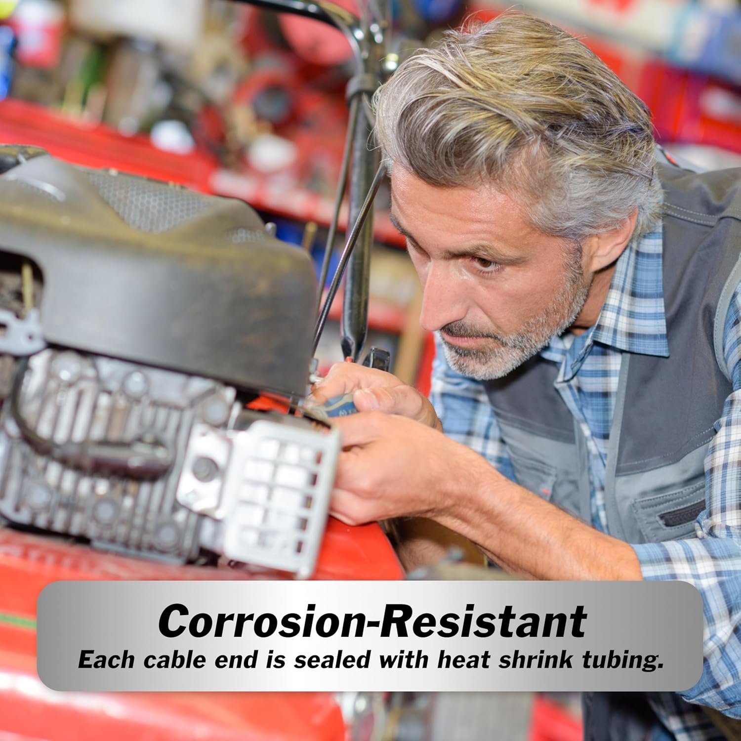 CORROSION-RESISTANT HEAT SHRINK: Each cable end features heat shrink tubing for protection against corrosion and wear, extending durability in long car battery cables setups