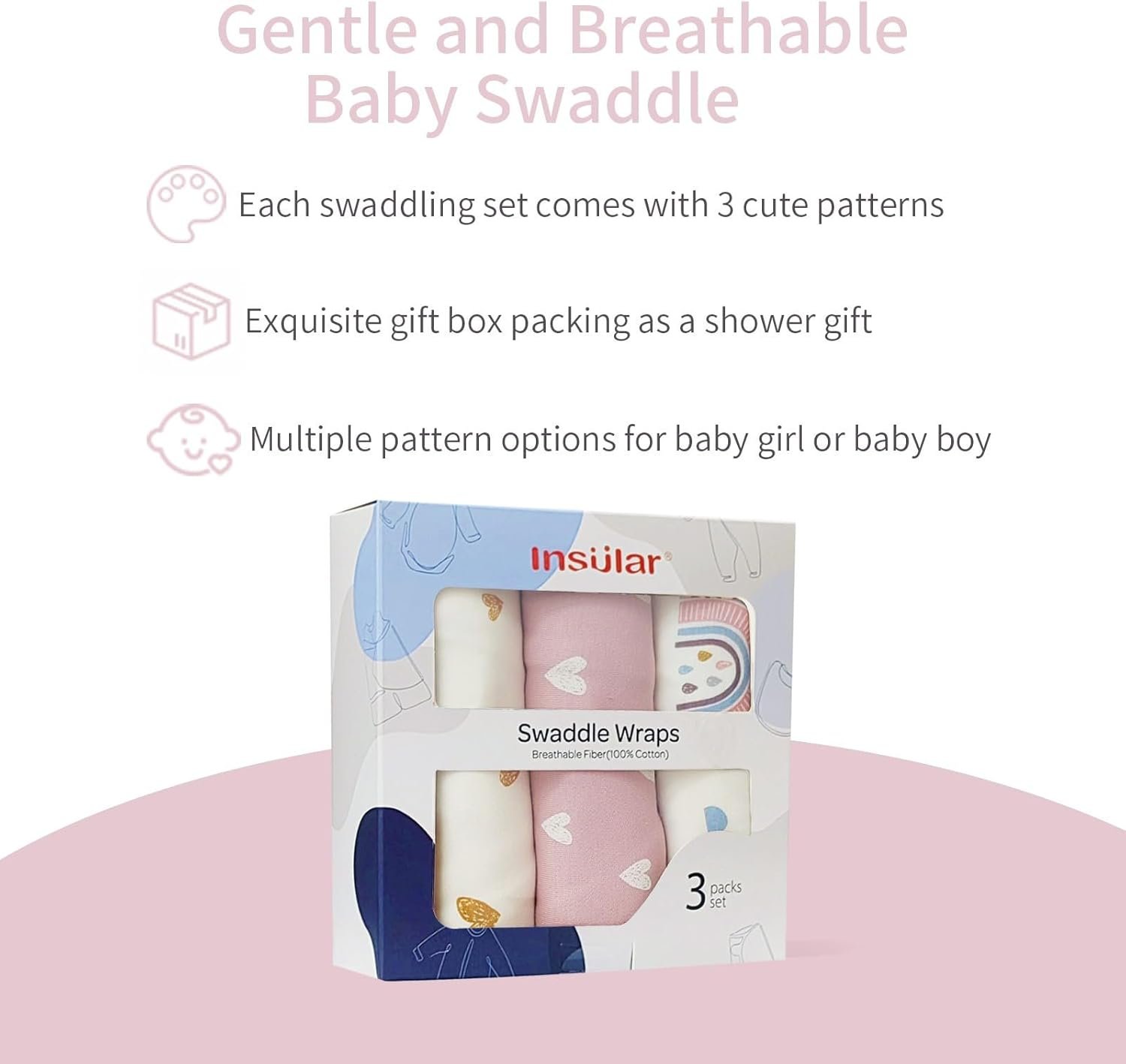 DIVERSE&GIFTABLE :A variety of sizes and styles are available. There are boy baby styles and girl baby styles. Each swaddling set comes with 3 beautiful designs. The cute swaddles are ideal gifts for baby showers, birthdays or Christmas.