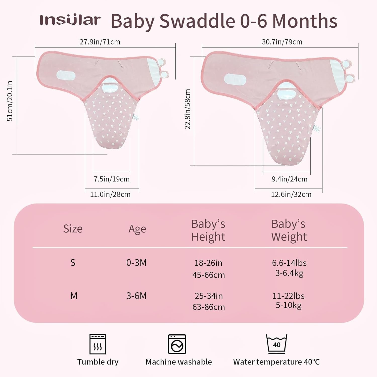SAFE&ADJUSTABLE: All INSULAR swaddling blankets are made with no zippers, snaps or buttons that would be extra safe and soft for your little angle. The adjustable sleep sacks have soft fabric wings that fasten securely with hook and loop attachments to create a perfect fit.