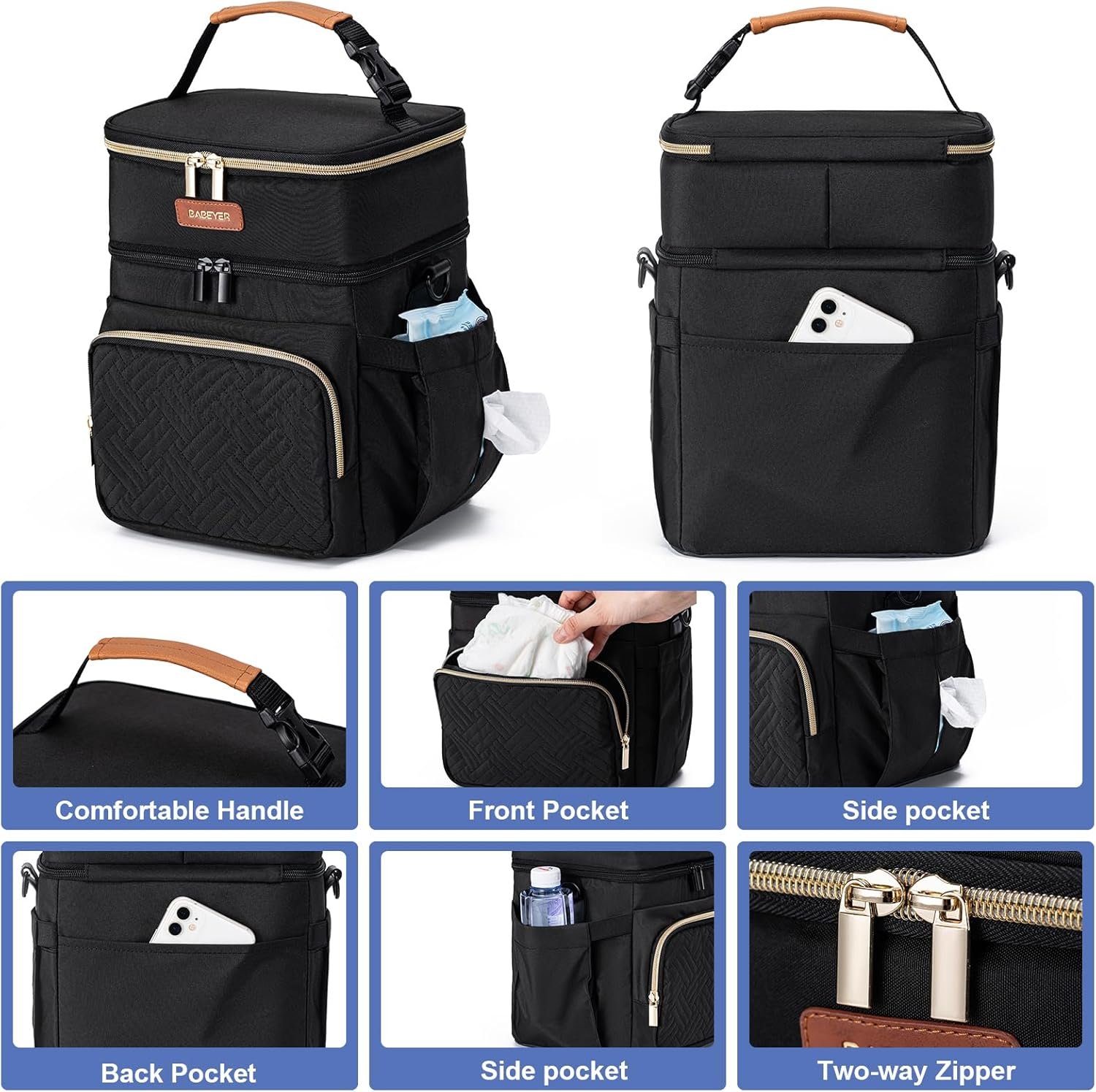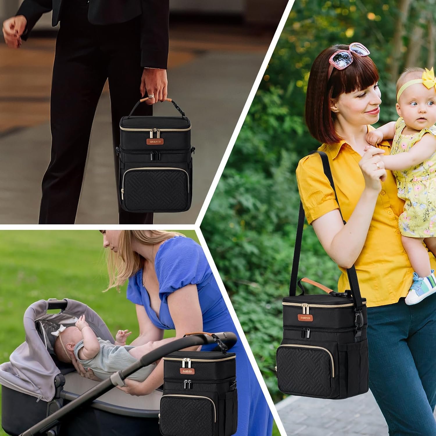 Ergonomic & Hands-Free Convenience:Adjustable shoulder strap + detachable top handle adapt to strollers or shoulder carry. Bonus back pocket for quick-access items (keys, wipes). Designed for multitasking moms—ideal for airports, parks, or office days.