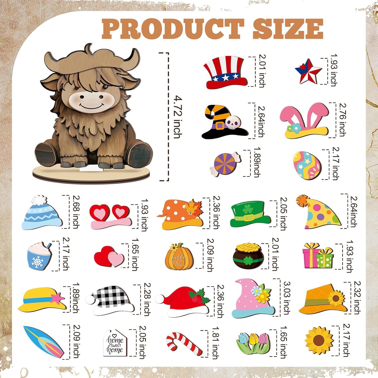 Abundance in Quantity and Size: the package includes 1 cow yak decoration with a stand and 26 wooden holiday signs, ensuring you have enough options to switch and DIY based on your preferences
