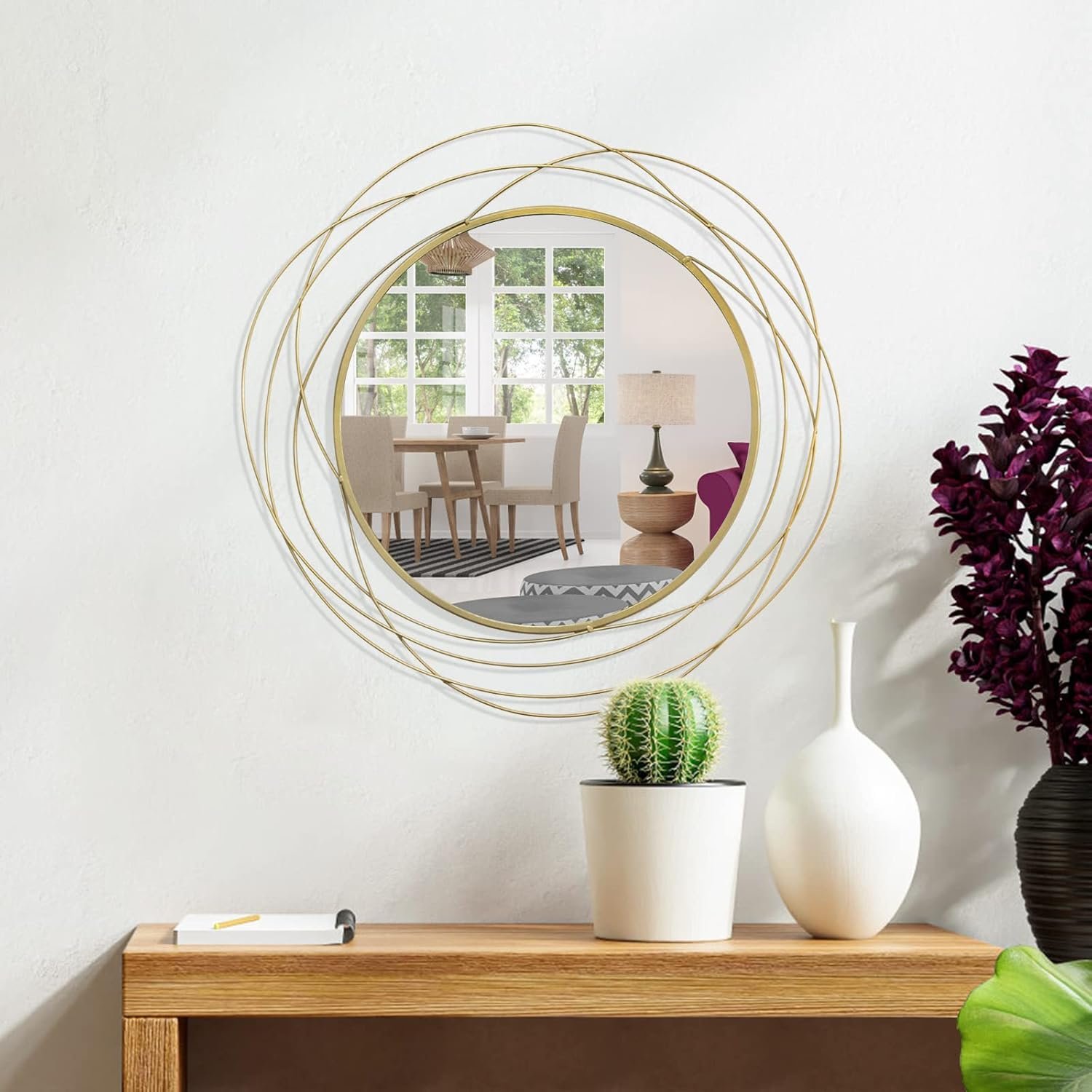 ironsmithn Wall Mirror Mounted Round Decorative Mirrors Circle for Bathroom Vanity, Living Room or Bedroom (Gold1)