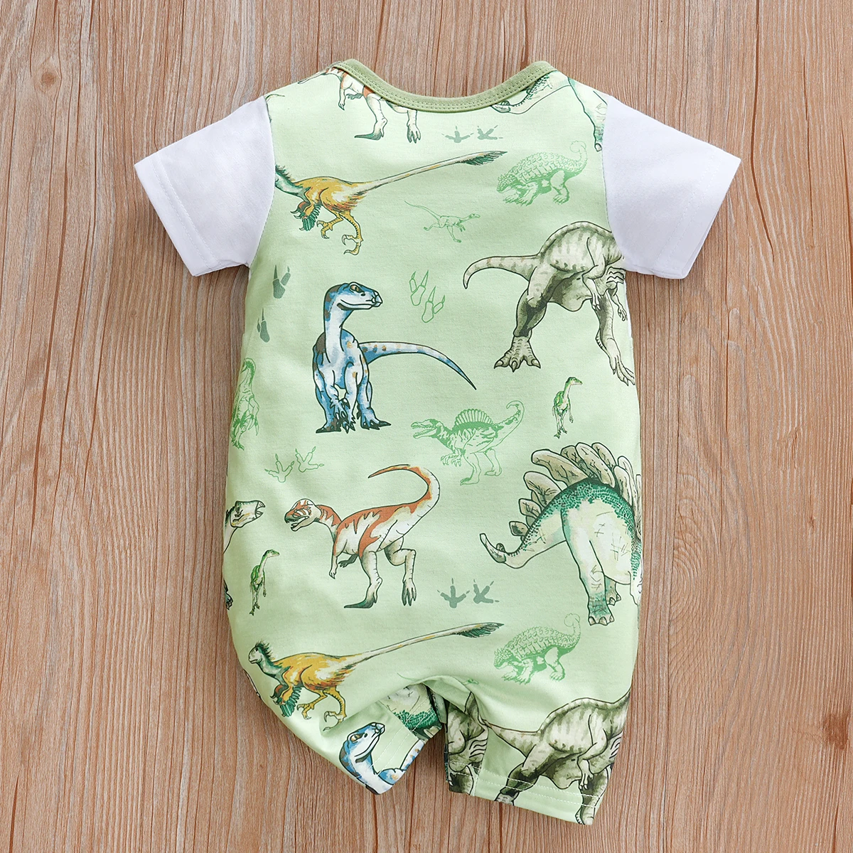 Newborn Baby Overall Romper for Boys Infant Short Sleeve Dinosaur Printed One Piece Outfit Summer Bodysuit 0-12M