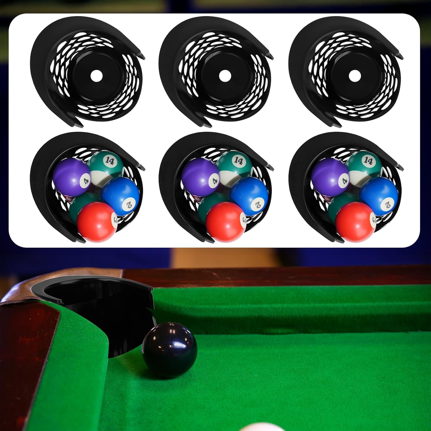 JASTT 6 Pack Set of Pool Table Pockets (Thickened Plastic Material) Black Large Capacity Pool Table Pocket Replacement