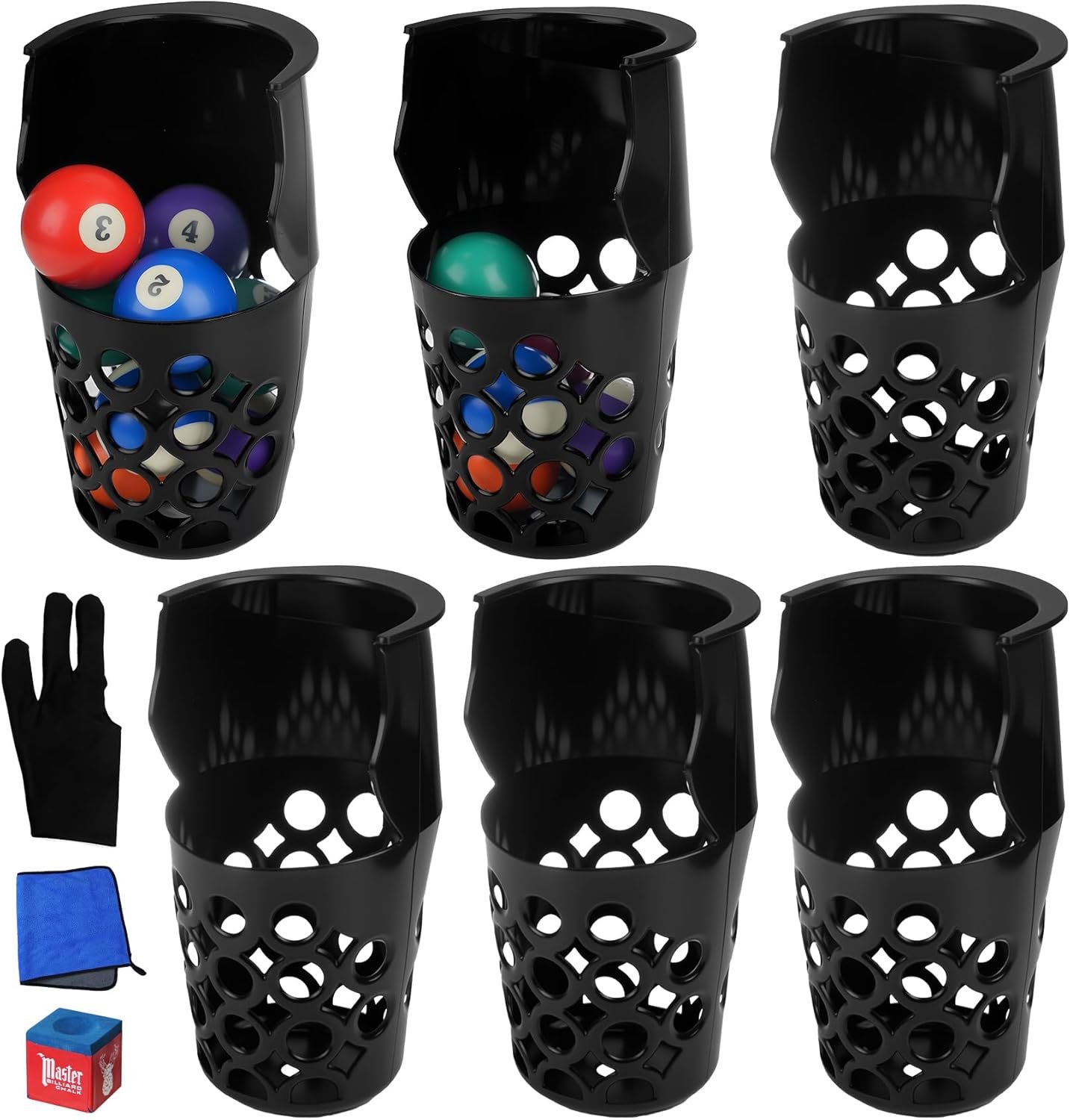 Premium Value Bundle:Pockets + Billiards Essential Accessories! Get everything you need in one box! Includes 6 plastic replacement pockets PLUS a pro billiards glove, absorbent microfiber table towel, and high-grip blue cue chalk – complete your table maintenance & playing kit.