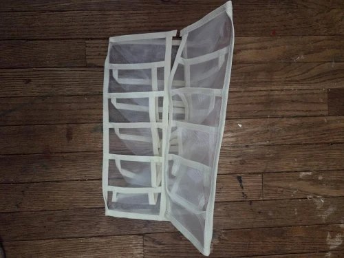 Mesh organizer, what makes it less firm, still serves to store clothes, this size is for size S or M shirts, no, it’s not suitable for larger clothes.