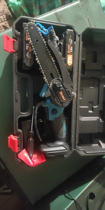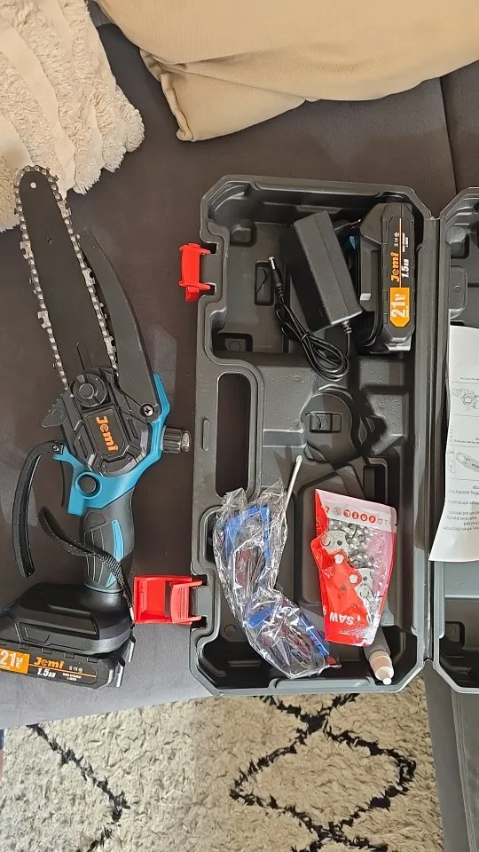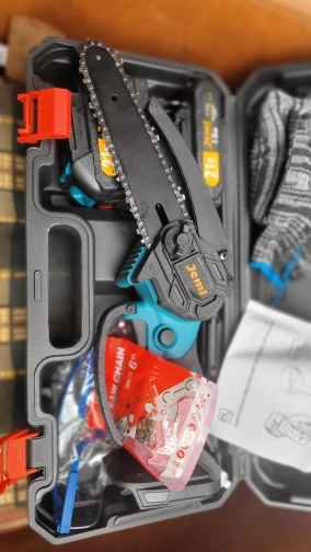 The mini chainsaw is not suitable for long-term use or cutting > branches with a diameter of 10 cm. With small tasks and cut-off times under 1 minute, everything runs smoothly. I have my 1. Saw with a continuous use of 2 minutes “burned out”. The engine runs hot and oil leaks into the engine = engine damage. Now I have the 2nd one for small garden tasks. Device ordered and now only for small uses. Then the price is also right 🙂 … now I have a replacement battery and replacement charger.