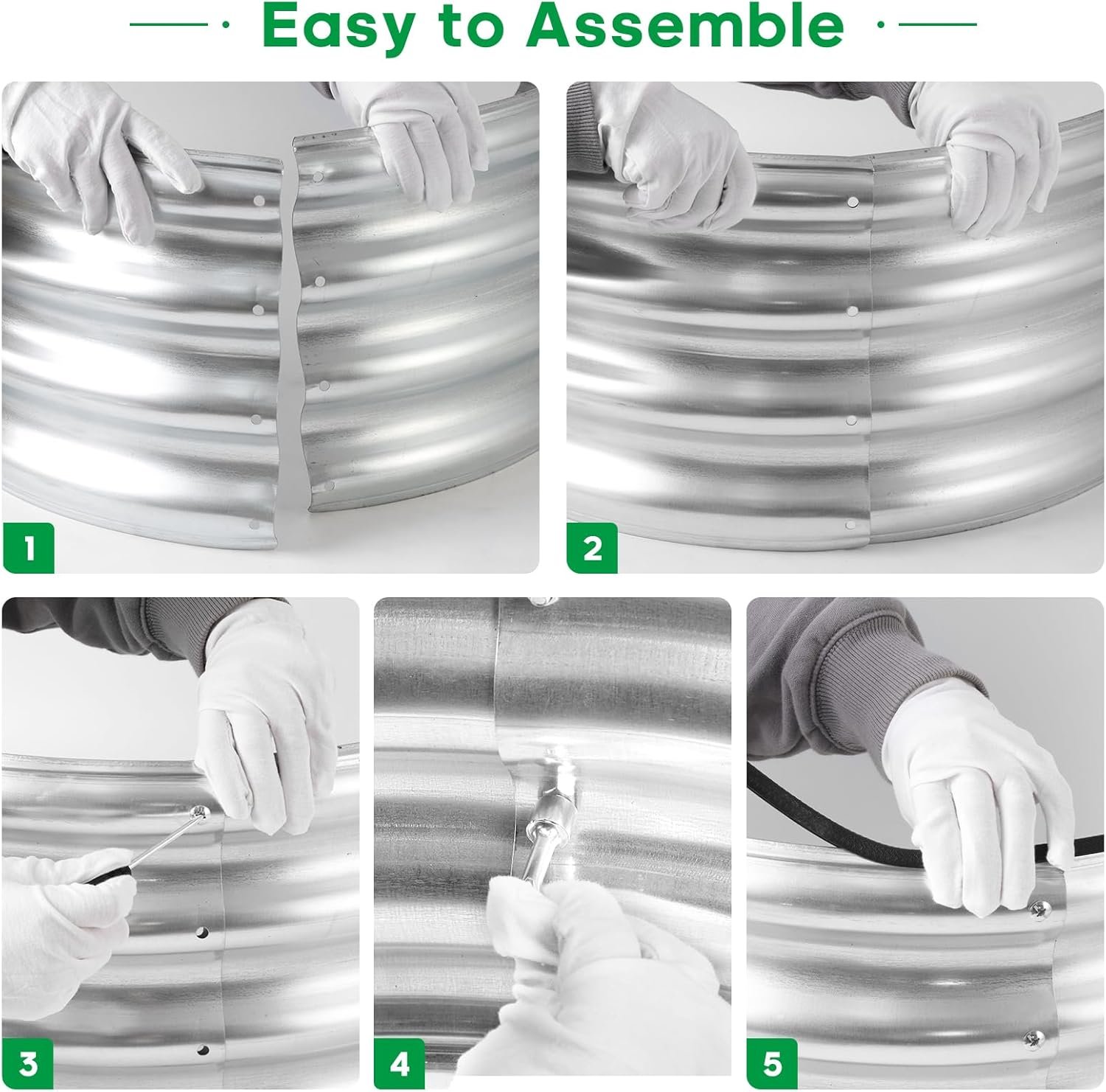 What You Get: we have included Galvanized raised garden bed kit with detailed assembly instructions, rubber edge strips, safety gloves , wrench tools and with galvanized nuts and bolts in the box .These essential tools elevate your overall planting and gardening adventure