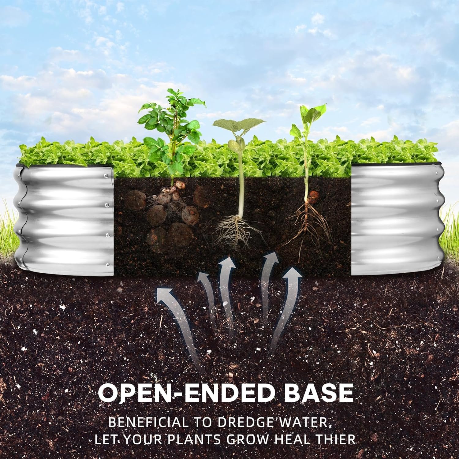 Open base: This raised garden bed metal galvanized is designed with an open base, Sits on the ground garden bed which can effectively avoid water accumulation .
