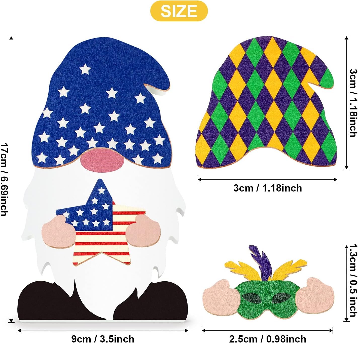 Appropriate size: the gnome is 3.9 inch in length, 0.8 inch in width, 6.7 inch in height, the wood shapes are all suitable for the gnome, please view the detailed size according to the picture