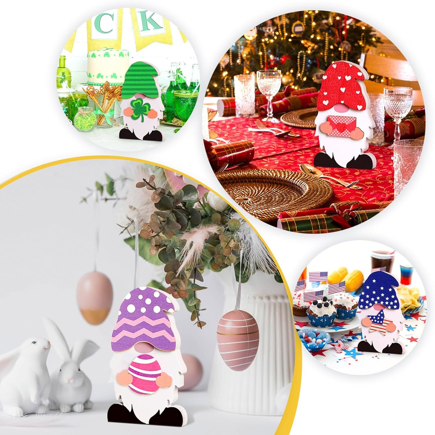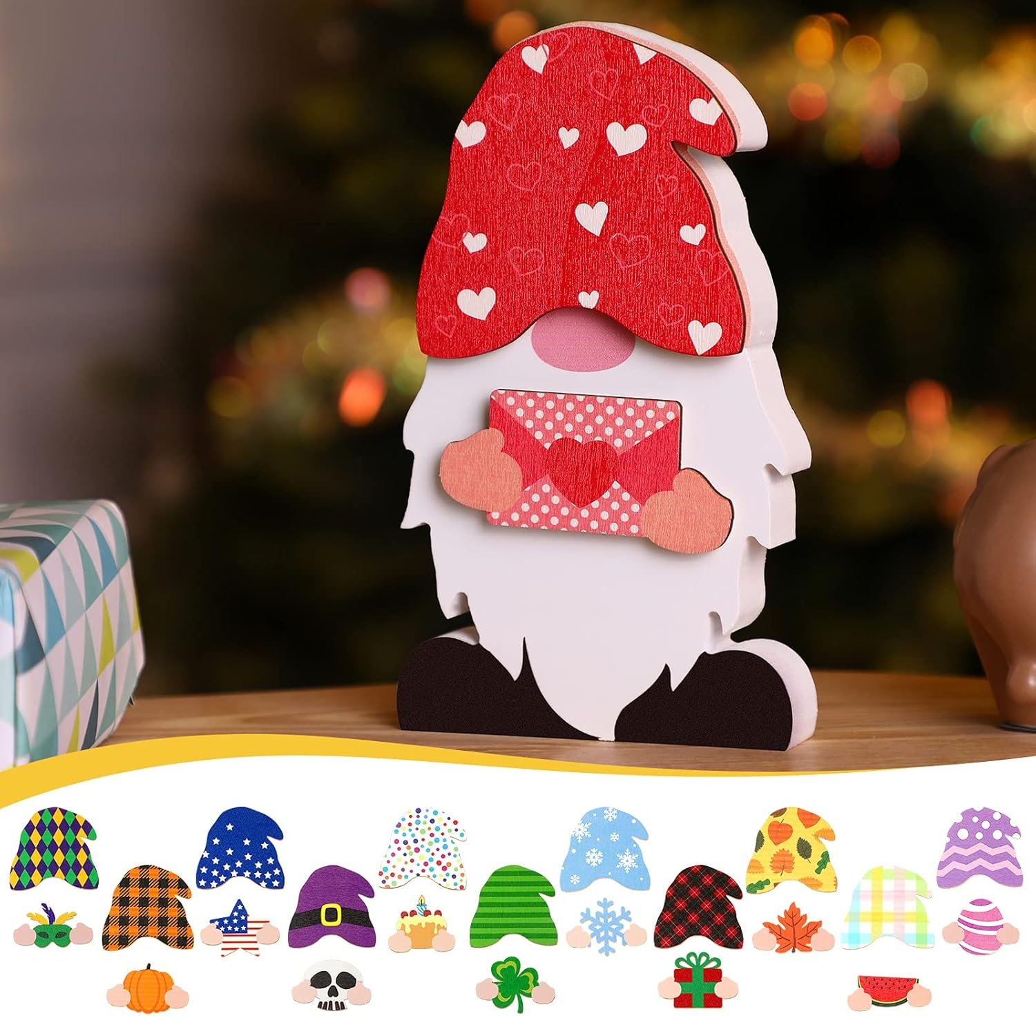 Good for many occasions: this set would be a big surprise to you, coming with your choice of 24 pieces that you switch out according to the season, occasion, and events, this wooden gnome is ideal for a shelf, mantle, fireplace, table and you can also put it wherever you what