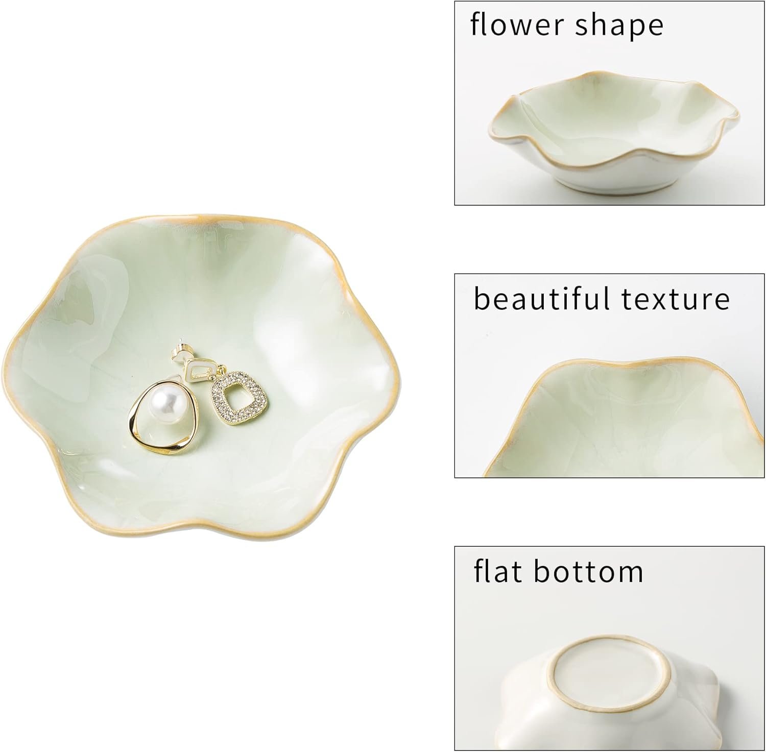 These jewelry dishes belong to the kiln transformation series. As is well known, ceramic production is a very complex process, and kiln transformation mainly refers to the uncertain natural changes in the surface glaze color of porcelain caused by temperature changes in the kiln during the firing process. The color may be darker or lighter, and the texture will be different from each other which has its own characteristics. So what you received will be a little different from the pictures. Please consider carefully before buying.The images presented online are more or less processed, so the colors displayed on mobile phones and computers may differ from the actual colors. Please consider carefully before buying.Please make sure to confirm the size before placing an order, as detailed size data is provided.