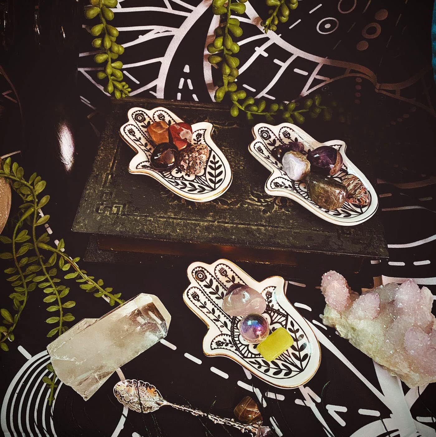 FUNCTION:This hand of fatima dish could be used as a offering dish, crystal holder, unique spoon rest, wedding ring holder,candle holder, candy holder,tea bag holder,air plant holder, jewelry tray, small ceramic plate.