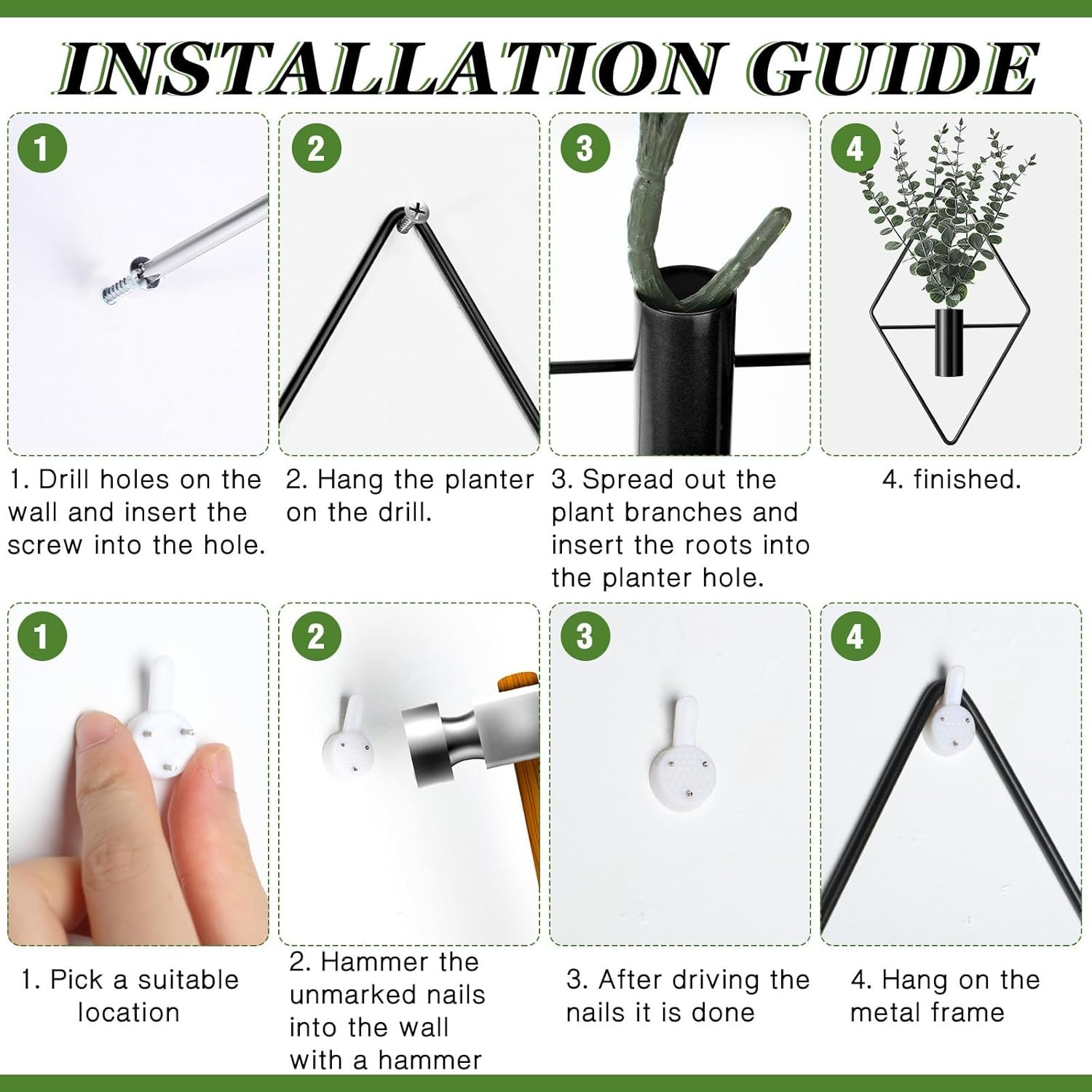 Quality Material: these modern wall hanging planters are made of reliable metal with coating and quality black ceramic, which are high gloss, not easy to fade or break, which will support a long service time for you
