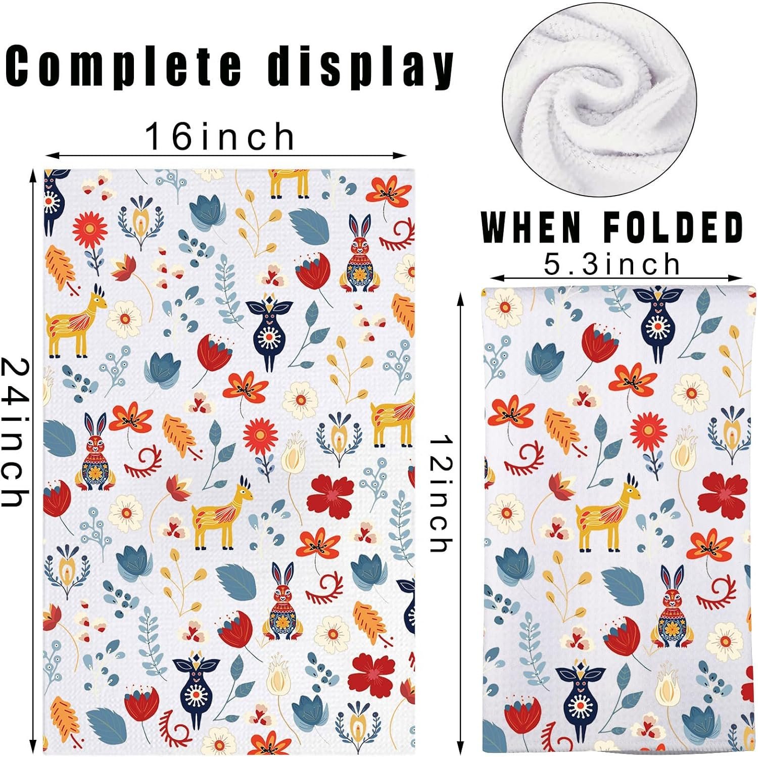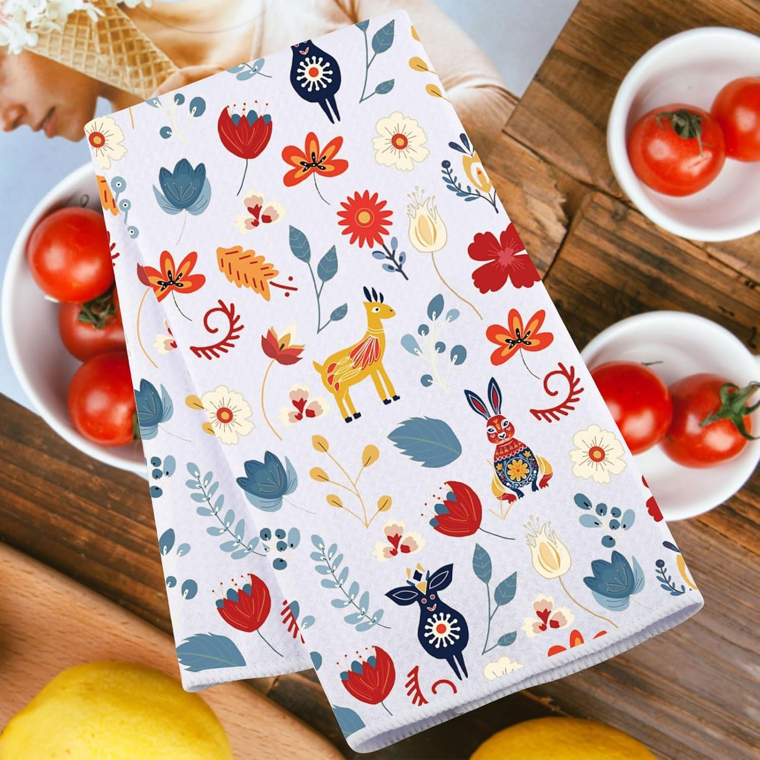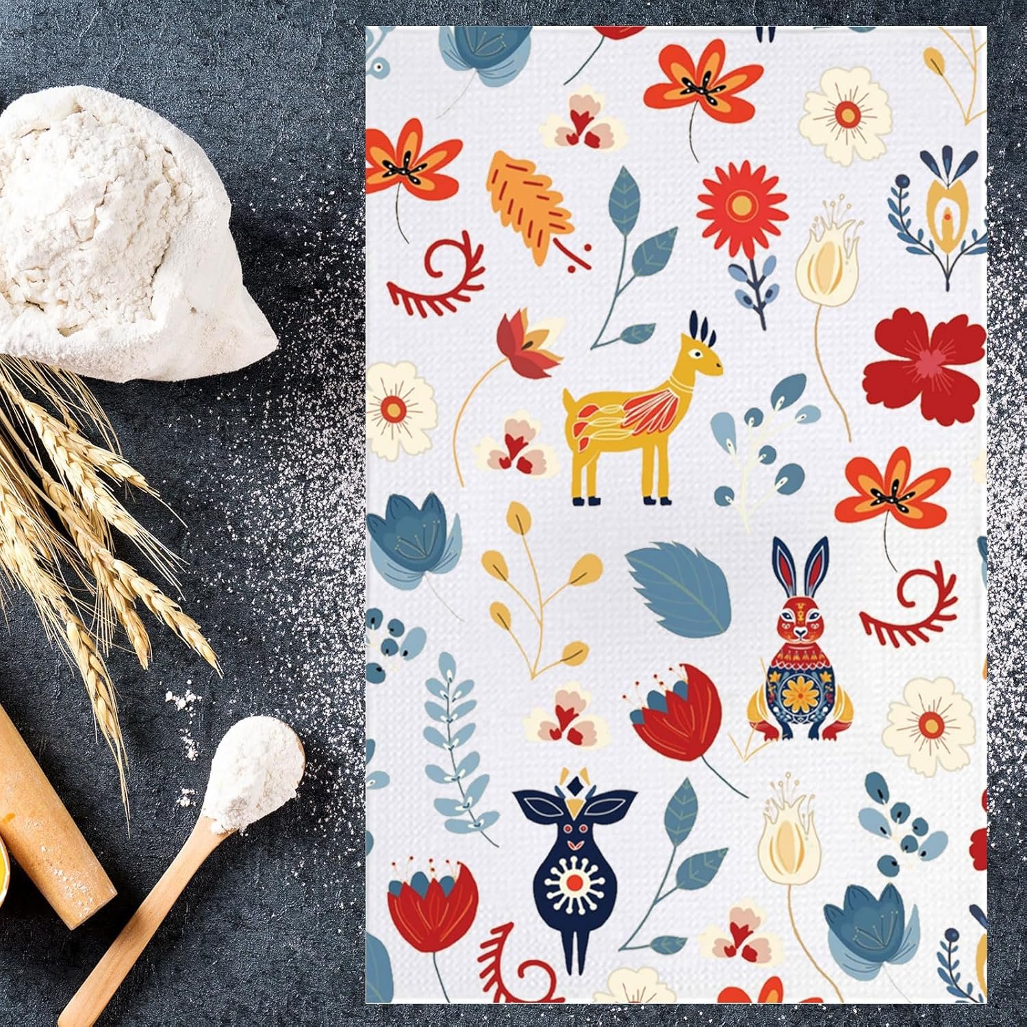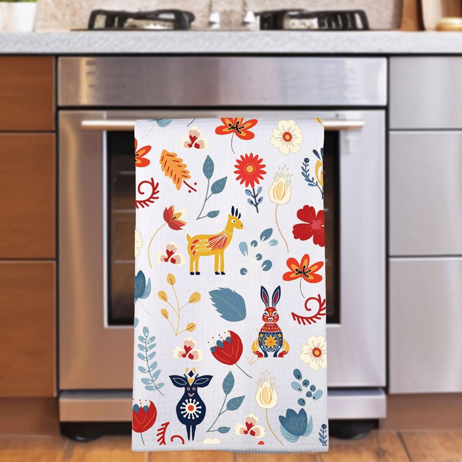 JNIAP Scandinavian Folk Art Towel – Scandinavian Dish Towels (Rabbit Deer)