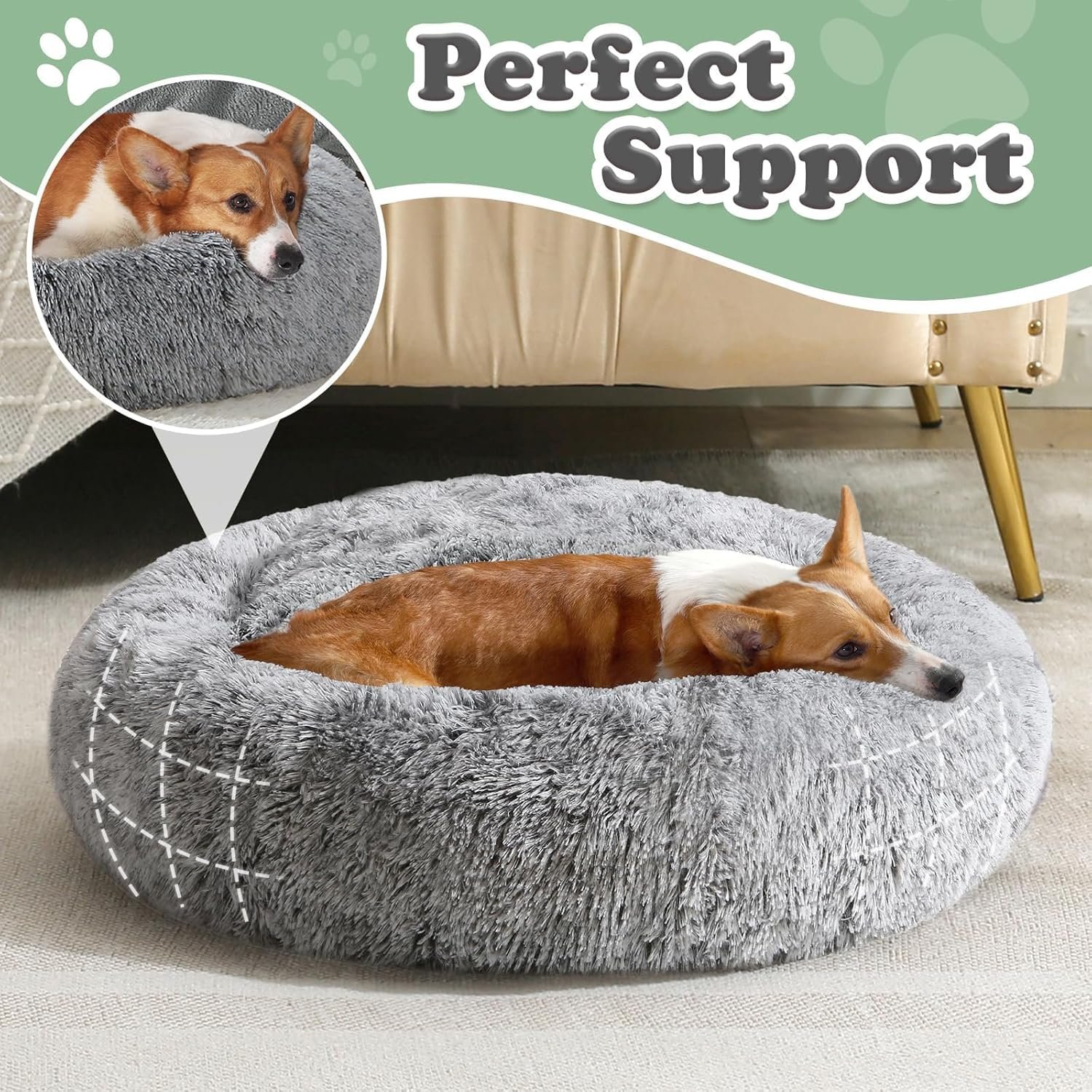 SOOTHING MECHANISM: The donut dog bed soothes animals by providing plush comfort, a solid border a headrest, and a sense of protection. While giving head and neck support to help your kitten or puppy calm down faster