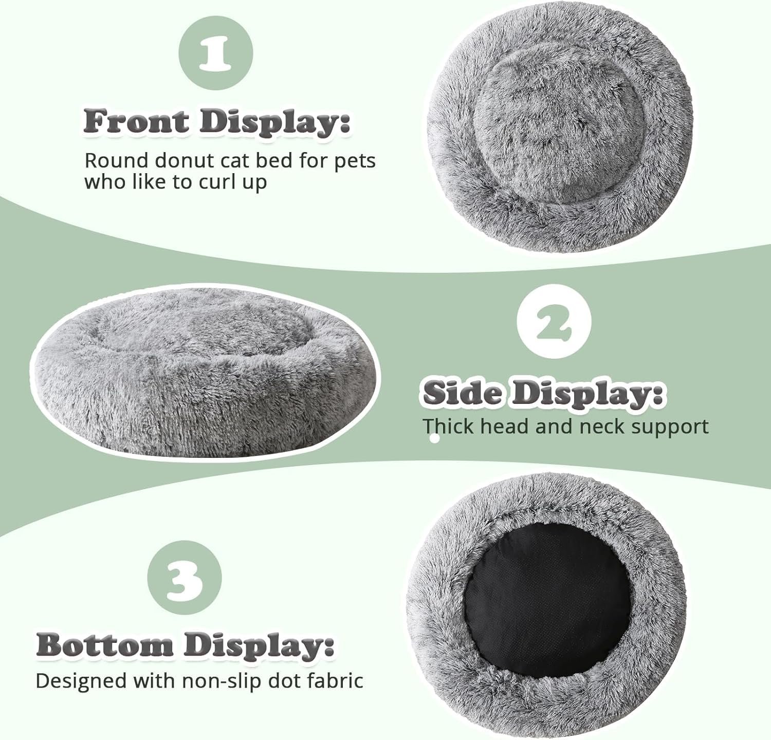 SIZE CHOICE: Calming donut fluffy plush faux fur cat beds are a must have for every pet owner 50/60/70/80/100 centimetres pet beds, ideal for small, medium and large dogs/ cats of any age weighing up to 10/20/40/50/100 lbs