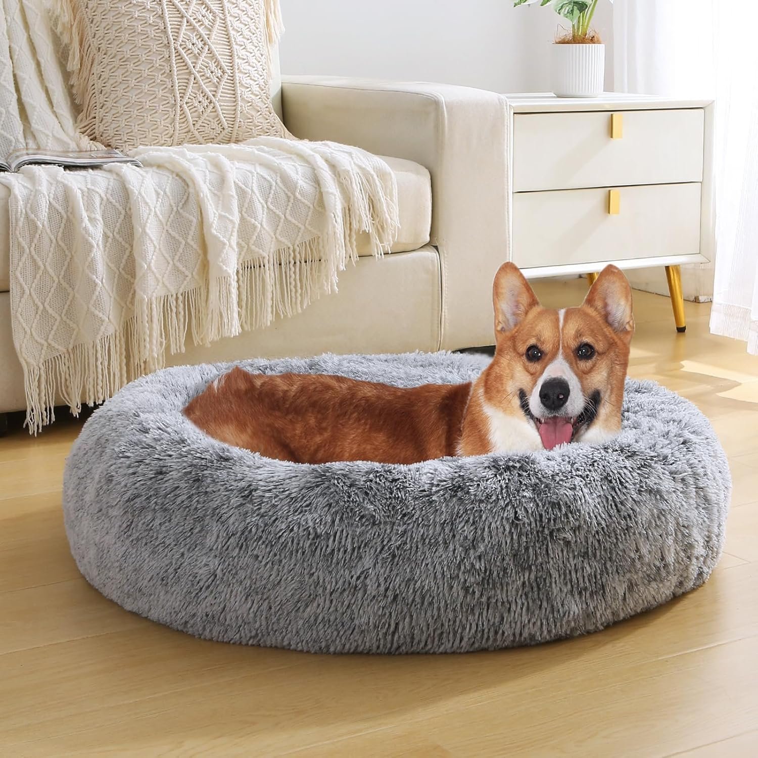 JOLLYVOGUE Dog & Cat Bed, Calming Anti-Anxiety Pet Bed for Small Dogs, Fluffy Donut Cushion for Small and Medium Pets (23″)
