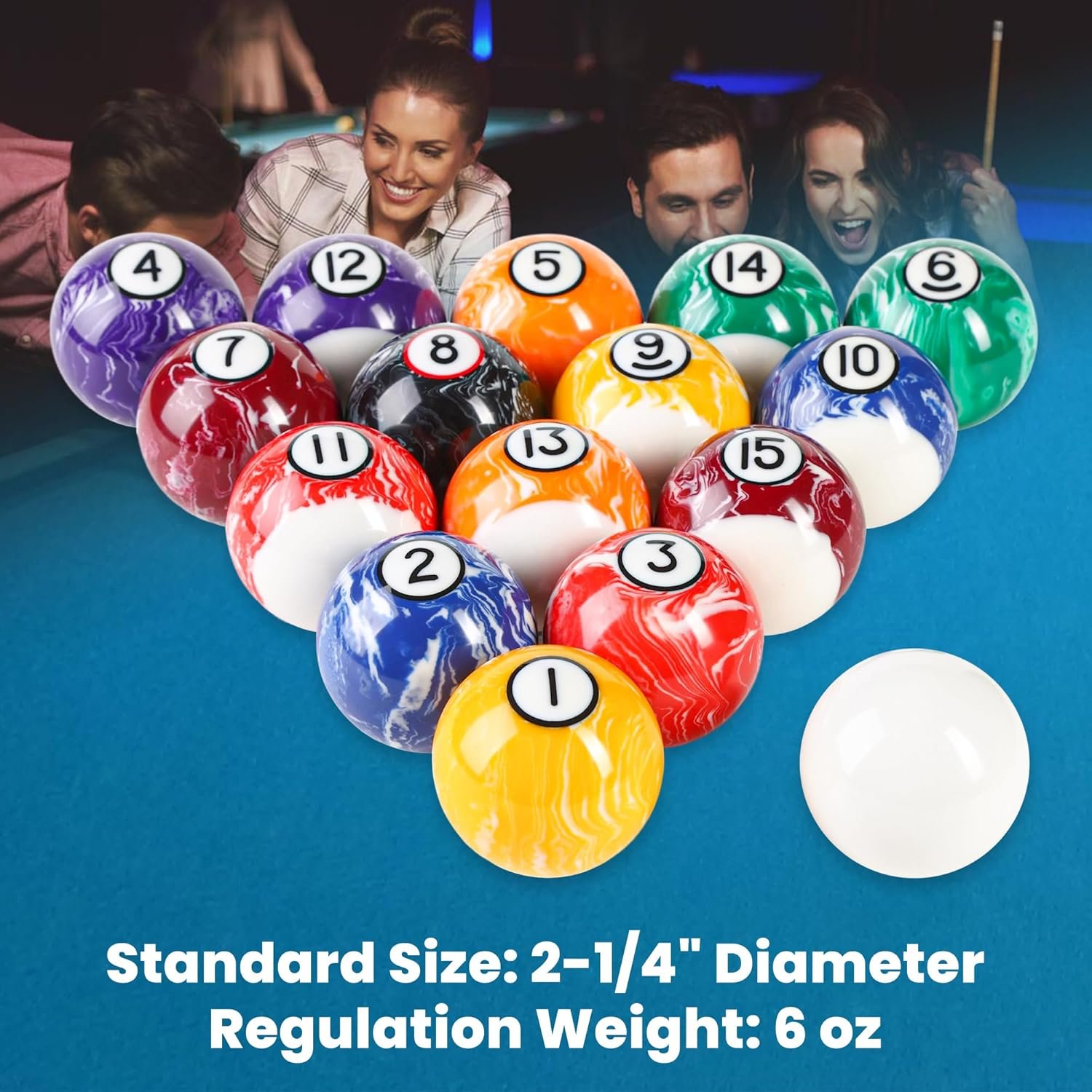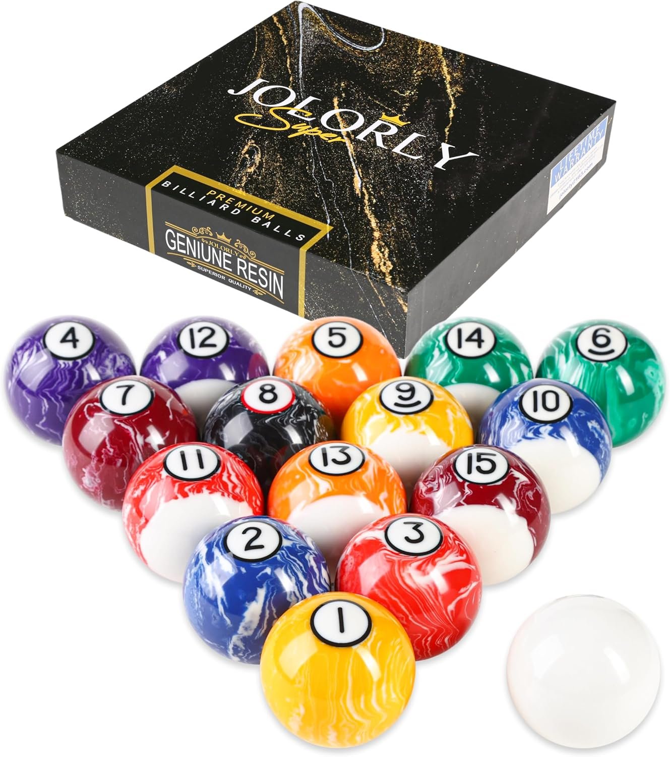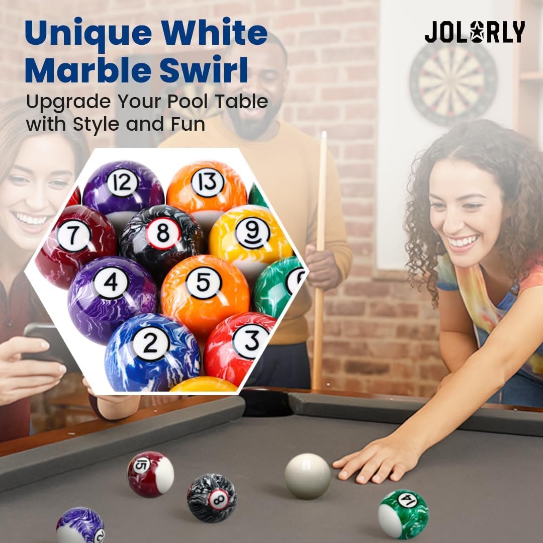 JOLORLY Pool Balls Billiard Set – 2-1/4″ Regulation Size, 6 oz Professional Weight, AAA Grade Pure Resin, Pool Table Balls for Tournament, Bar, Game Room & Gifts