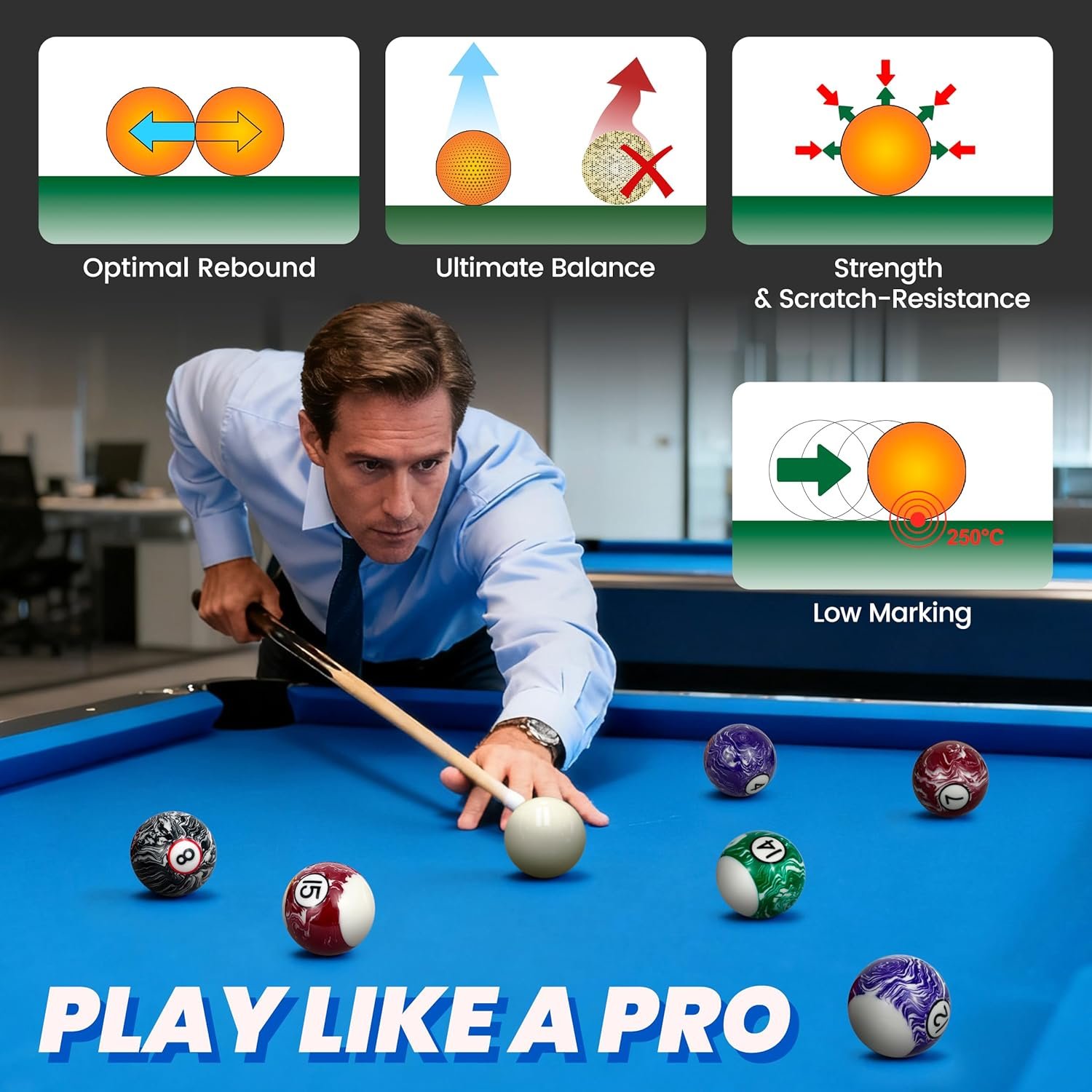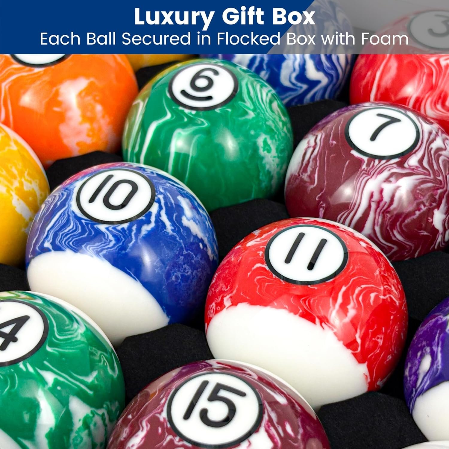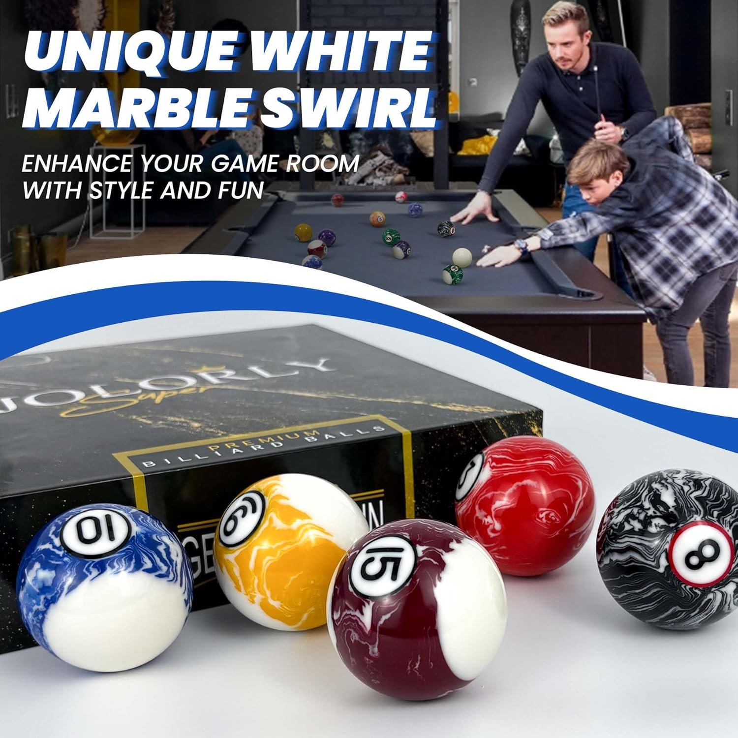 JOLORLY Pool Balls Billiard Set – 2-1/4″ Regulation Size, 6 oz Professional Weight, AAA Grade Pure Resin, Pool Table Balls for Tournament, Bar, Game Room & Gifts
