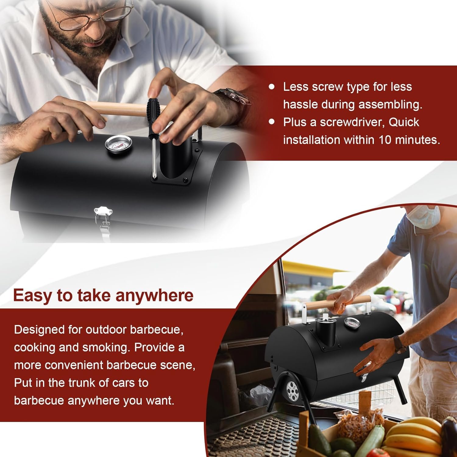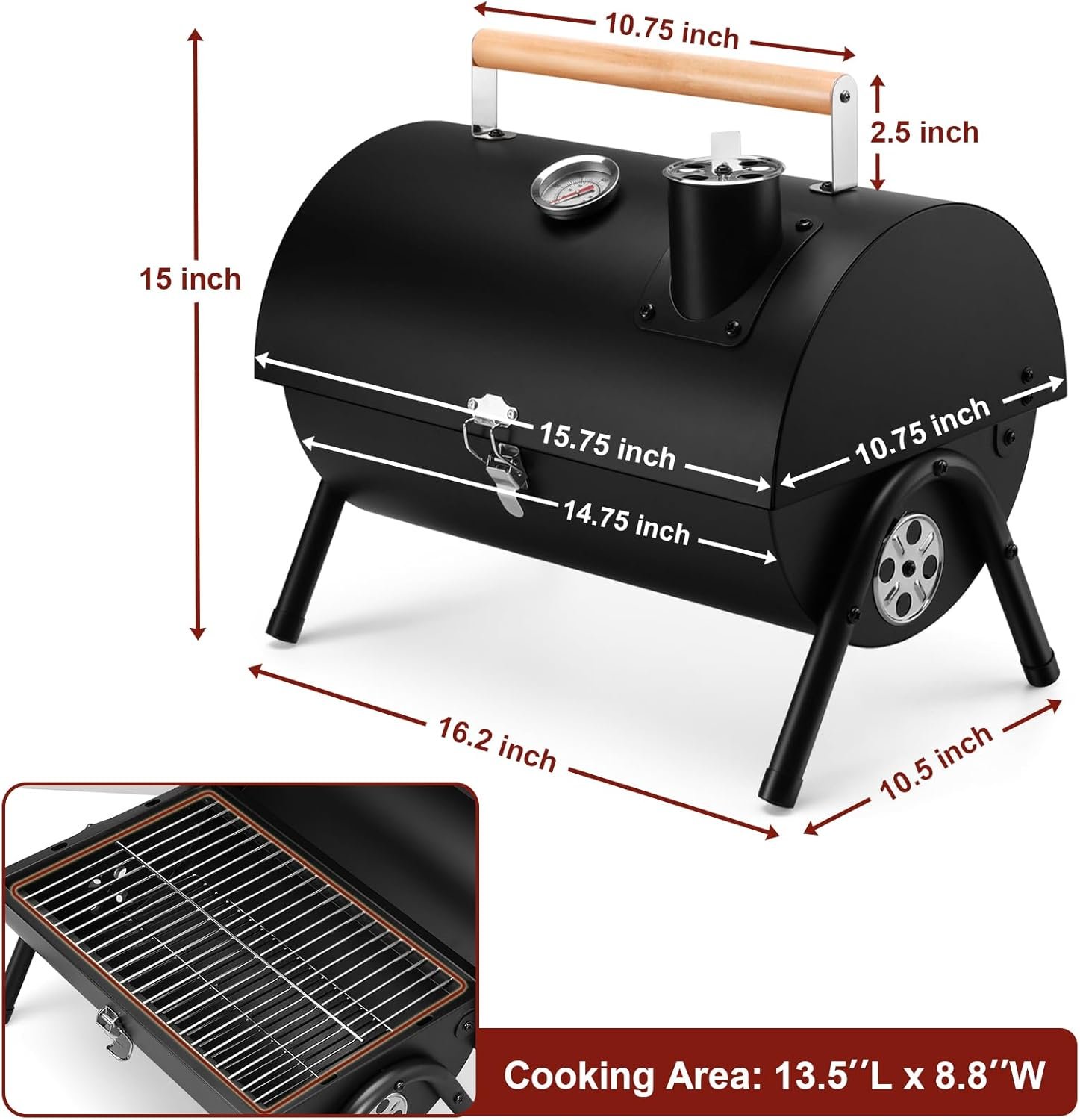 Joyfair Portable Charcoal Grill with Thermometer, Small Tabletop Barbecue Grill for Outdoor Camping Backyard Party BBQ Cooking, Extra Thick Steel & Heavy Duty, Innovative Design & Easy Assembly