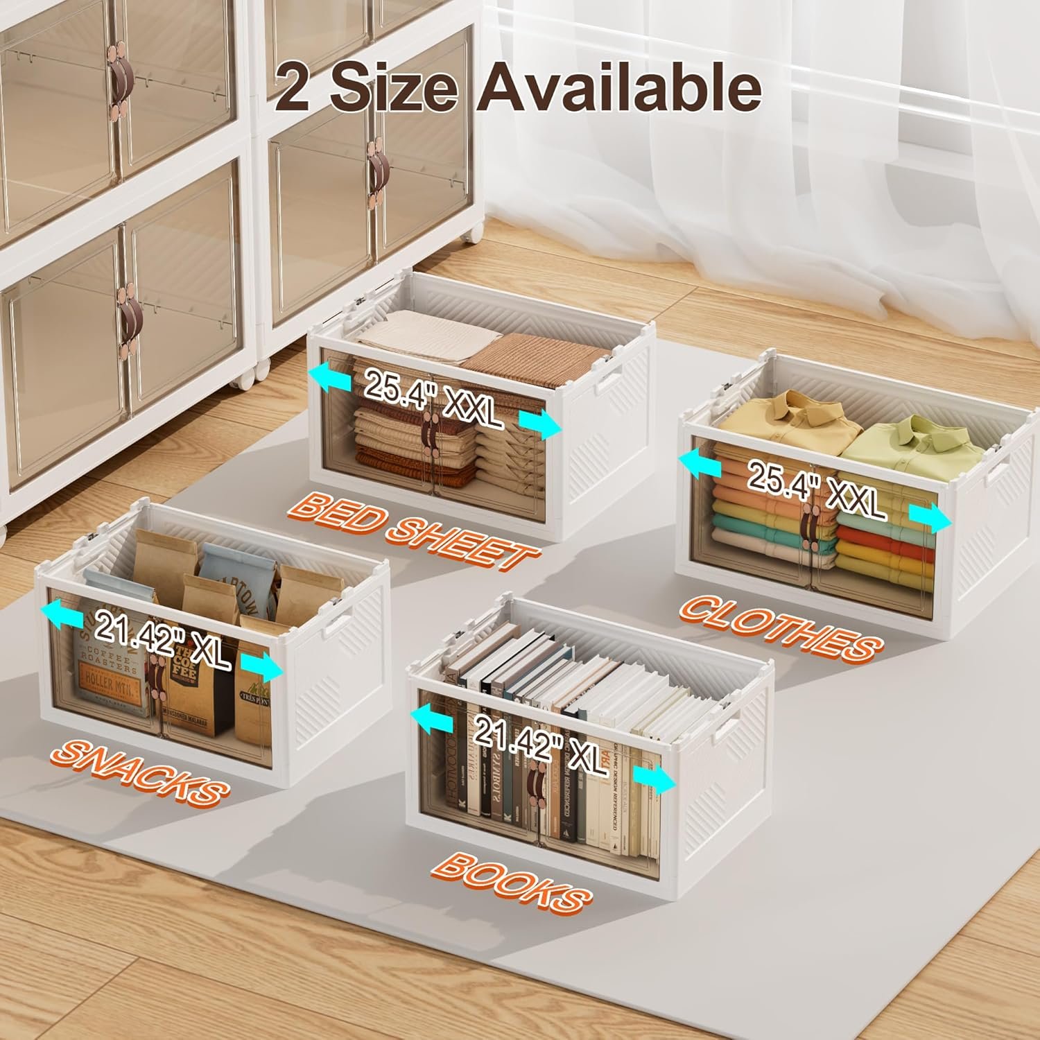 [Foldable & Translucent] The foldable design provides more convenience. When you’re not using these storage bins, you can fold them up and store them, saving more space. The translucent design of the storage box makes it easy to identify the contents of the storage box without opening it