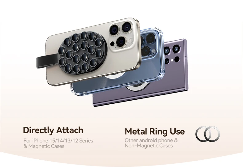For iPhone12-16 series and magnetic mobile phone cases, other mobile phones and non-magnetic mobile phone cases need to be used with a magnetic ring