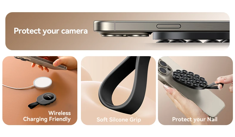 Protect your camera / Wireless charge friendly / Sofe silcone grip / Protec your nail