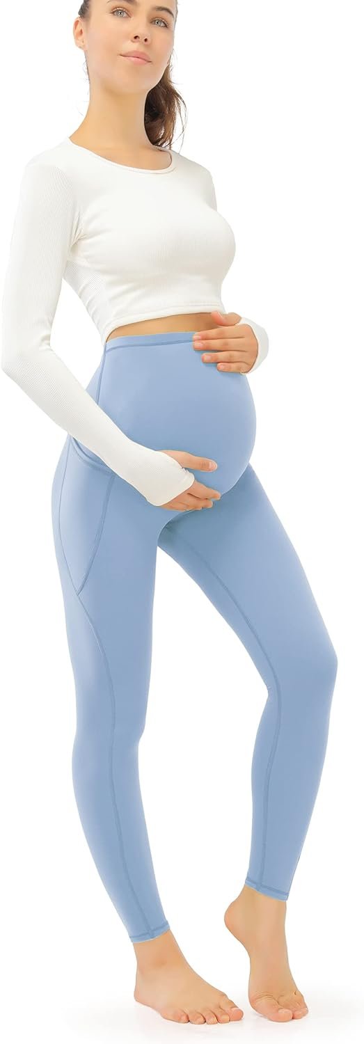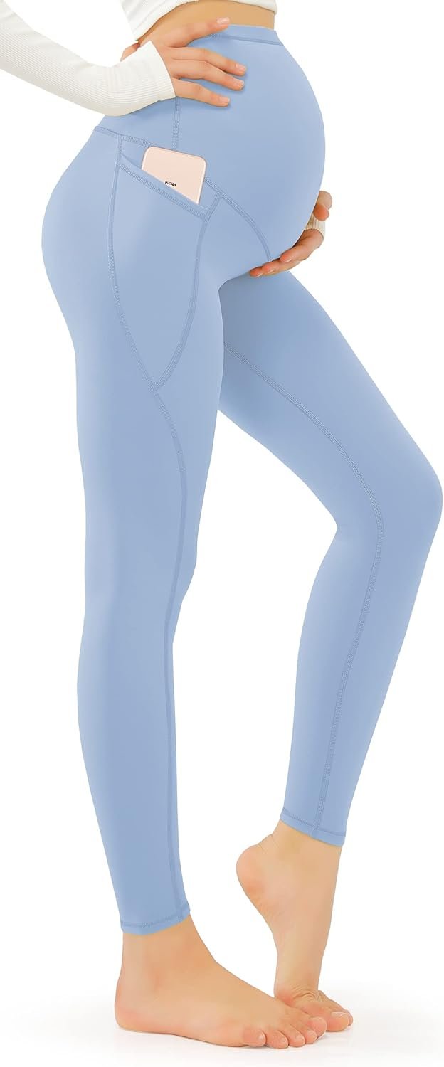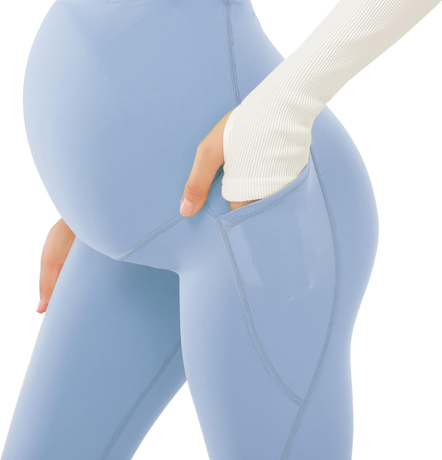 Customers find these yoga pants comfortable and soft, with a great fit that’s true to pre-pregnancy size and doesn’t feel tight. The material quality receives positive feedback, with the mesh holding up well and not tearing or pilling, while the leggings are particularly praised as maternity wear. Customers appreciate the pockets, with one noting they fit their iPhone 13 Pro perfectly, and the fabric is thick and not see-through. While some customers say they stay up well during cycling, others report they don’t stay in place.