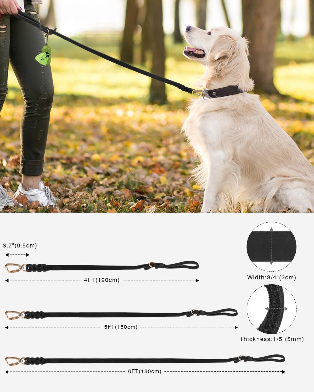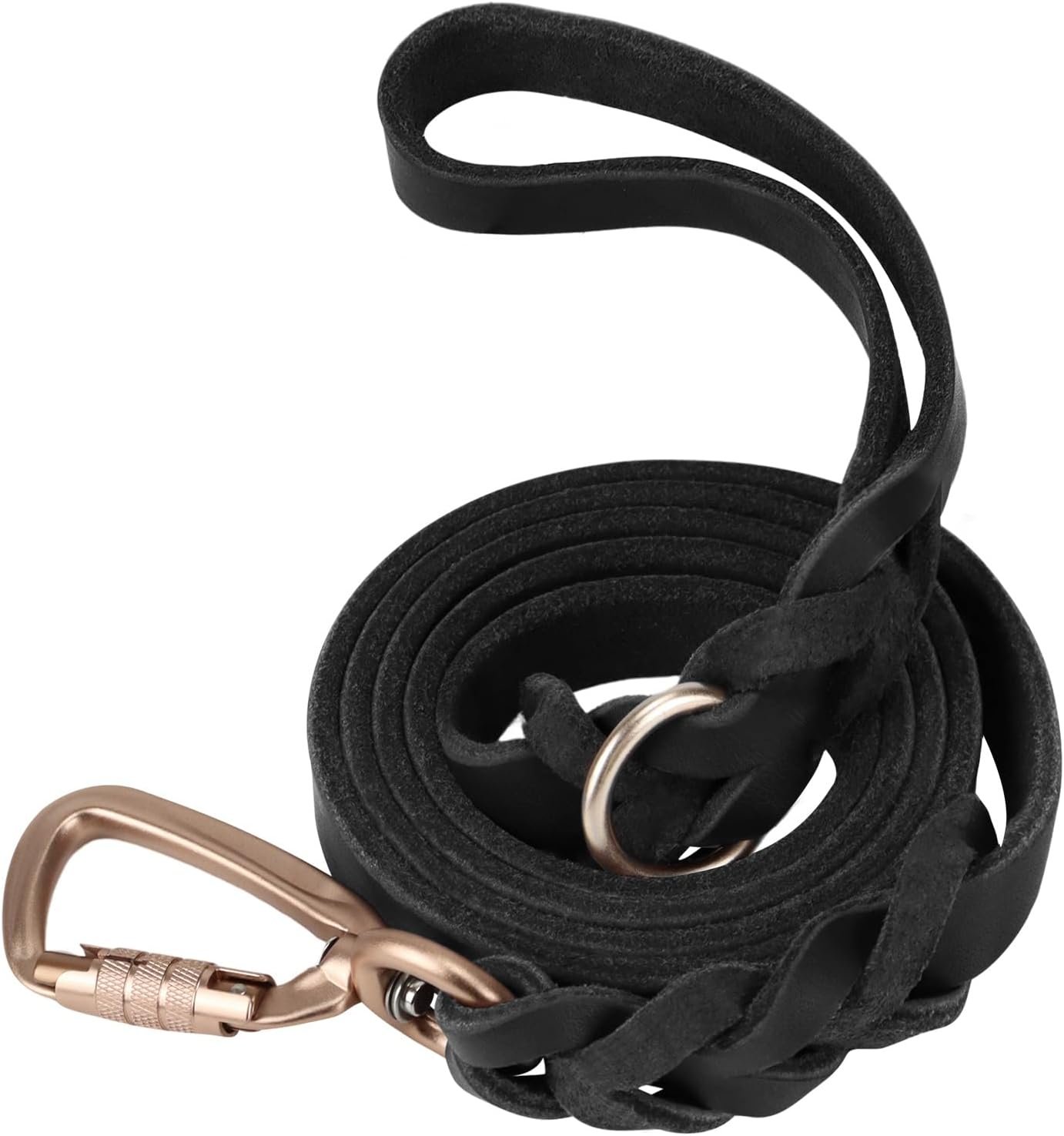 Joytale Leather Dog Leash, Genuine Cowhide Leather Leash 6ft by 3/4in, Heavy Duty Dog Leash with Lightweight Aluminum Hook, Soft and Durable Leash for Large Medium Dogs, Black