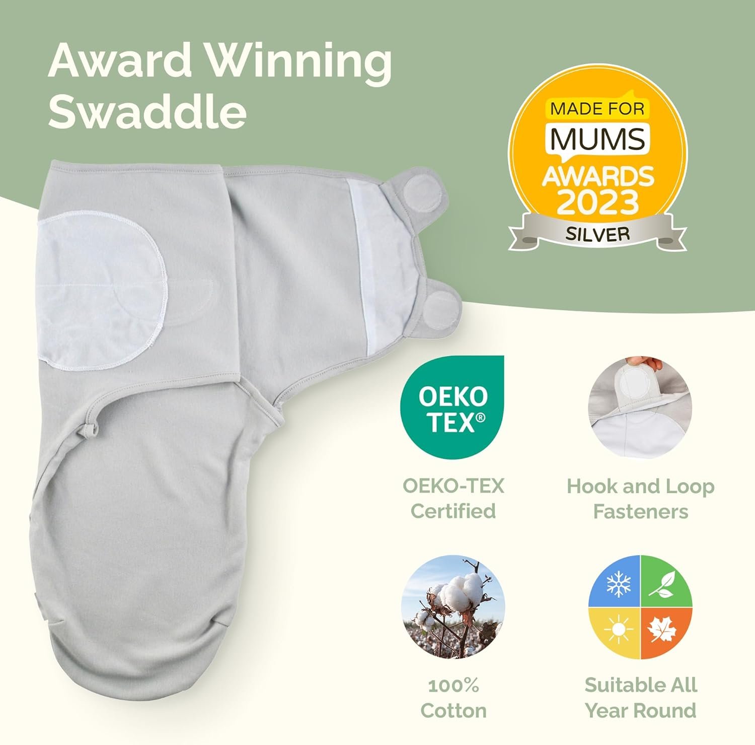 EASY TO USE – Our baby swaddle wrap is easier to use than traditional swaddling blanket. With a pocket for the legs, two wings that wrap around the arms and front fastening, even the wriggliest of babies can be swaddled without fuss.