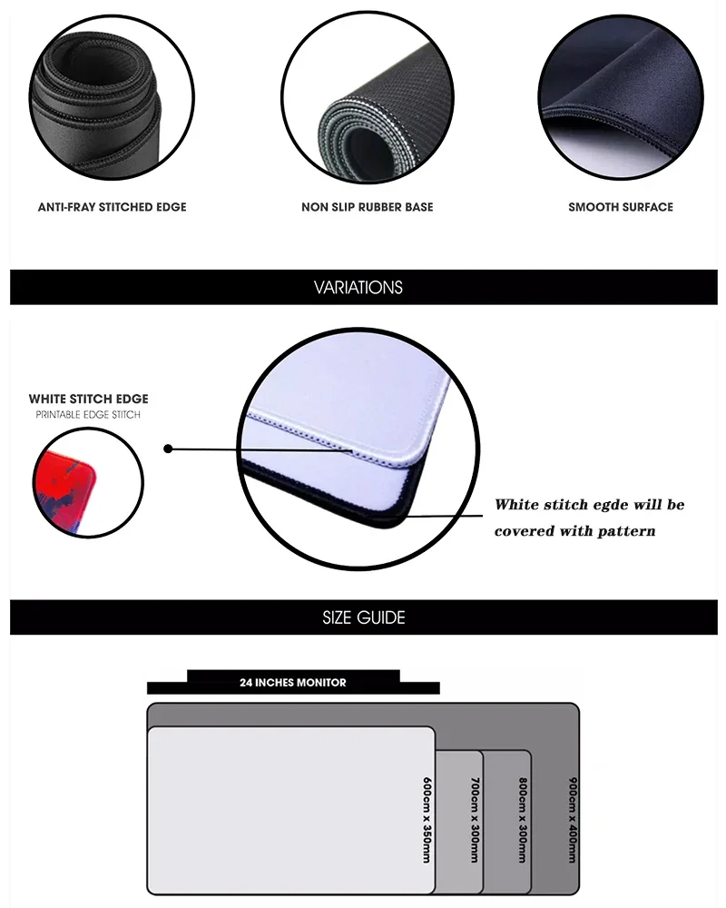 1.Due to the different monitor and thermal transfer or light effect,and the surface of the mouse pad is cloth and has grain. the actual color of the item might be slightly different from the color showed on the pictures.