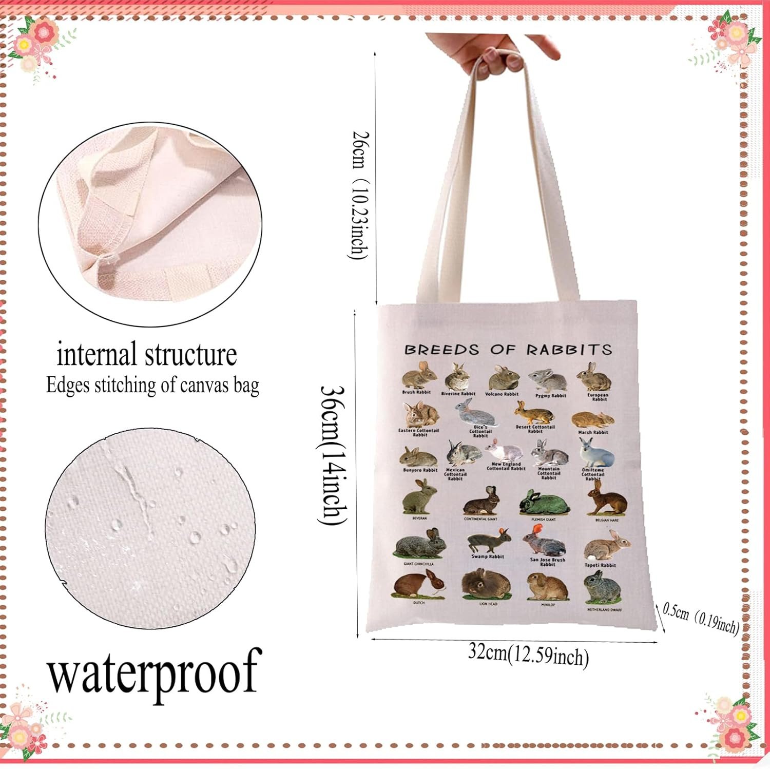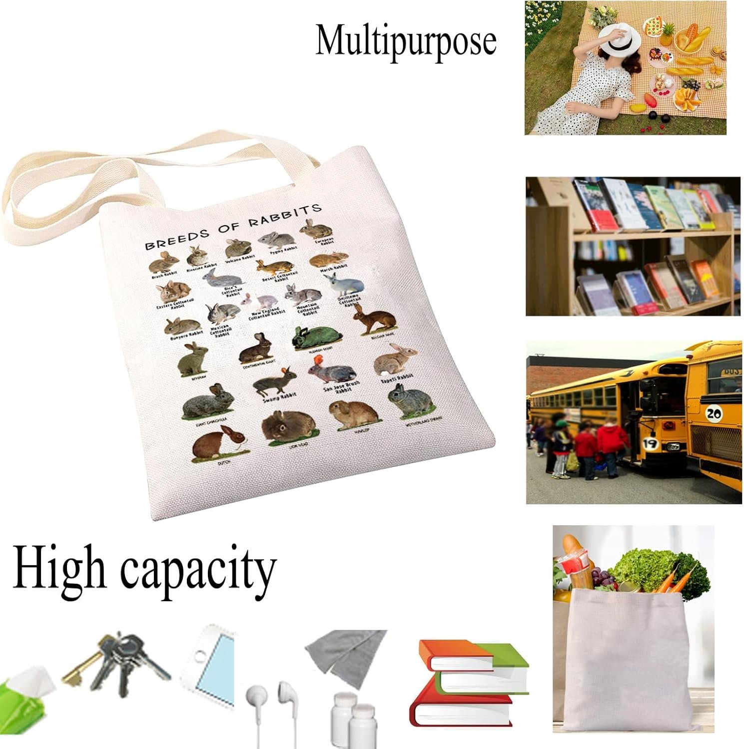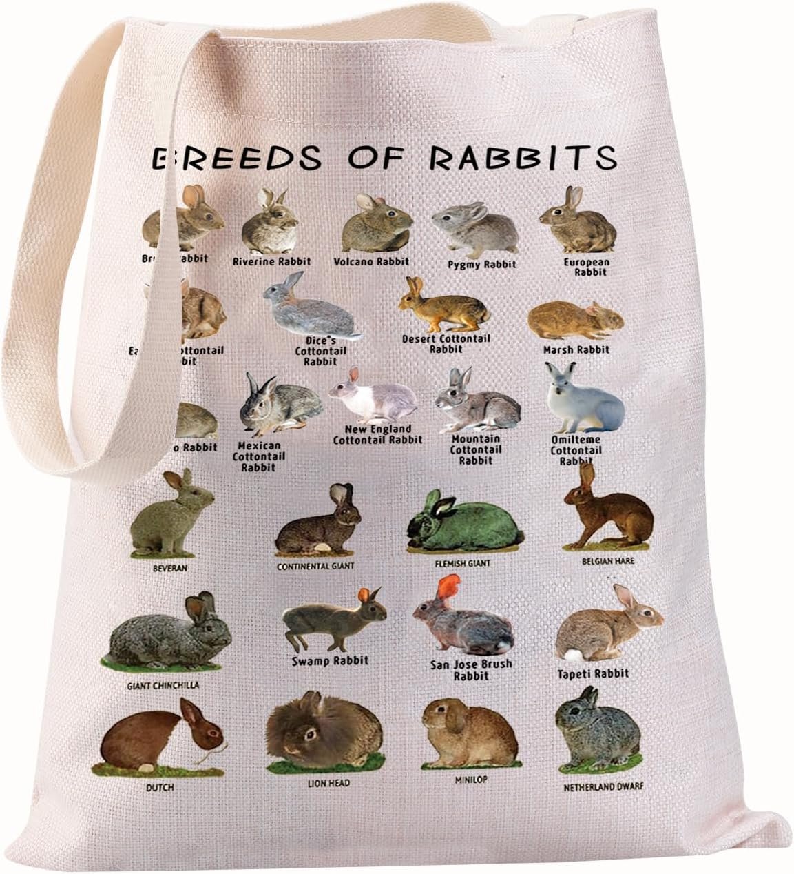 JYTAPP Cute Rabbit Tote Bag Breeds Of Rabbits Shopping Bag For Rabbit Lover Bunny Owner Gift