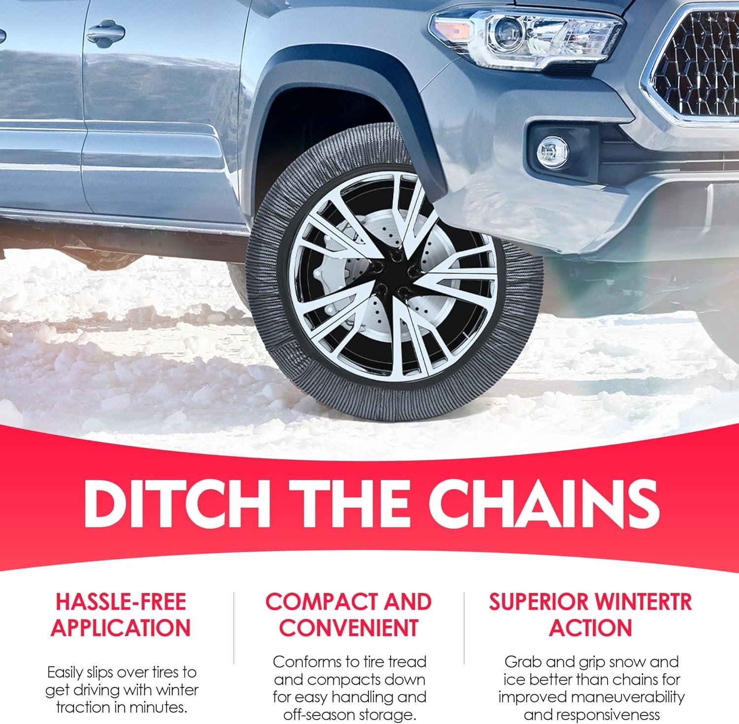 Durable and Reusable: Made from high-quality, tear-resistant materials, Snow Socks are built to endure winter after winter. These washable and reusable snow socks are designed to withstand the toughest conditions, providing you with long-lasting performance and value
