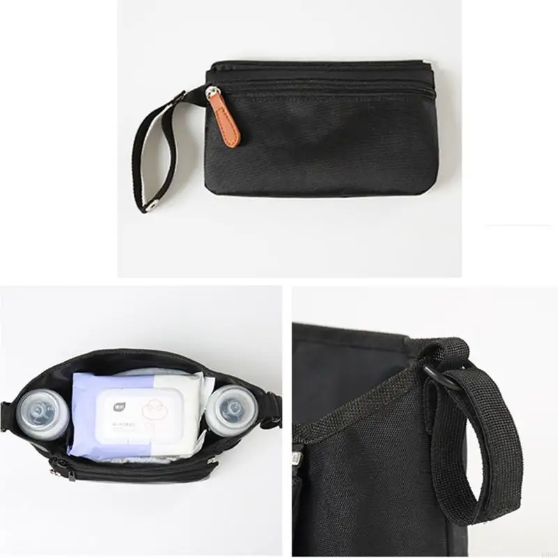 It’s separated design stroller diaper bag ,main bag is for baby’s water bottle ,milk bottle nappy mummy s phone ,main bag can hanging onto stroller ,cart ,wheelchair