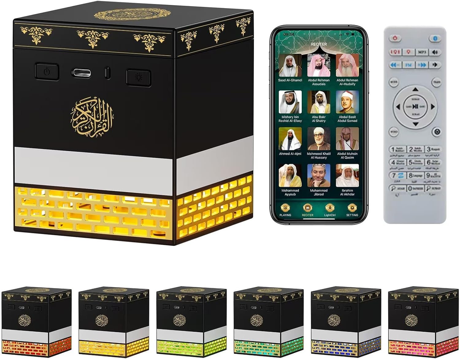 Kaaba Quran Speaker with Remote Control for 114 Quran Surahs, Night Light MP3 Music Player with 18 Reciters and 16 Translations