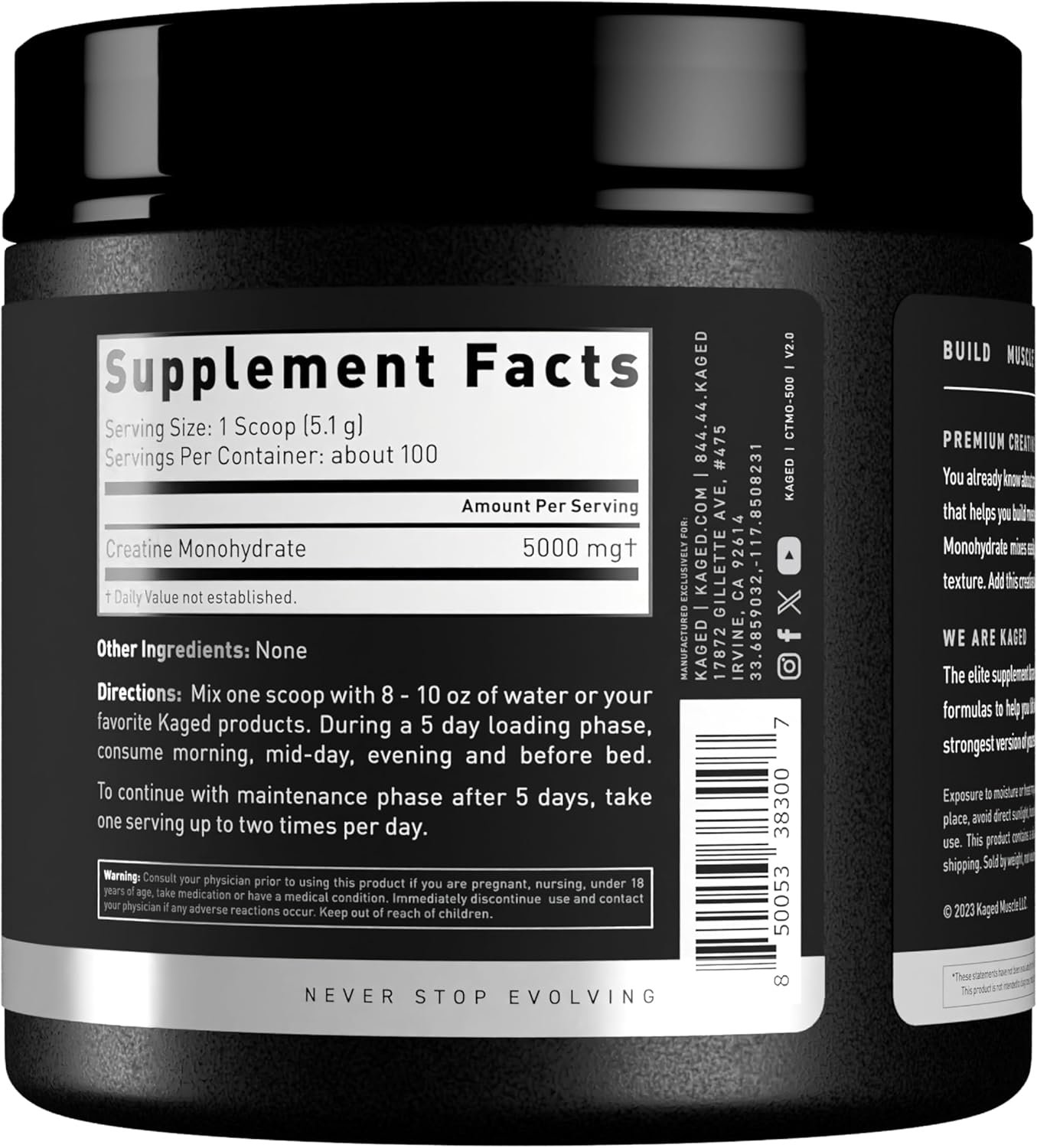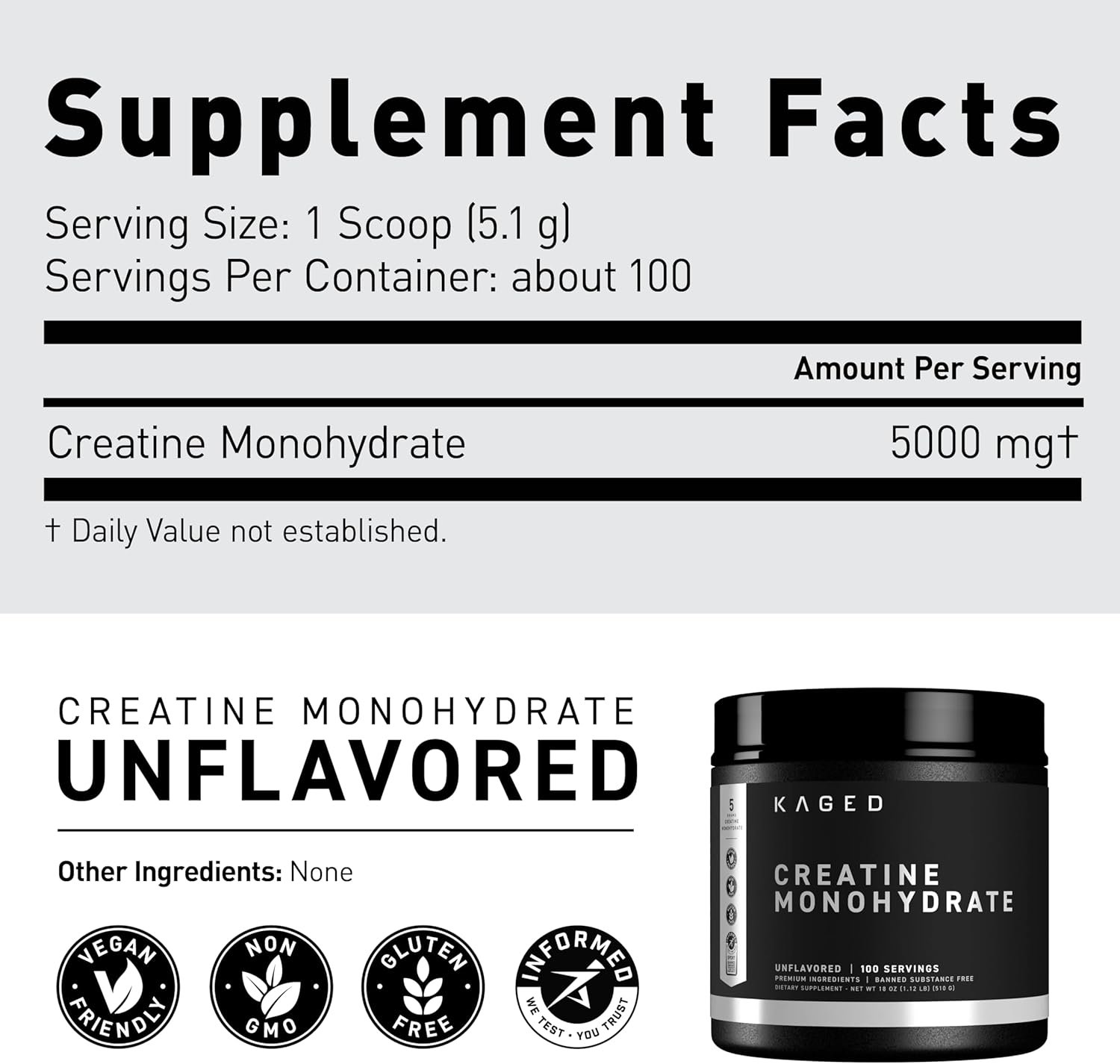 Kaged Creatine Monohydrate Micronized Powder, 100 Servings, Unflavored, Muscle Recovery and Growth Supplement for Men & Women, Vegan, Easily Digestible, Gluten Free, Keto Friendly