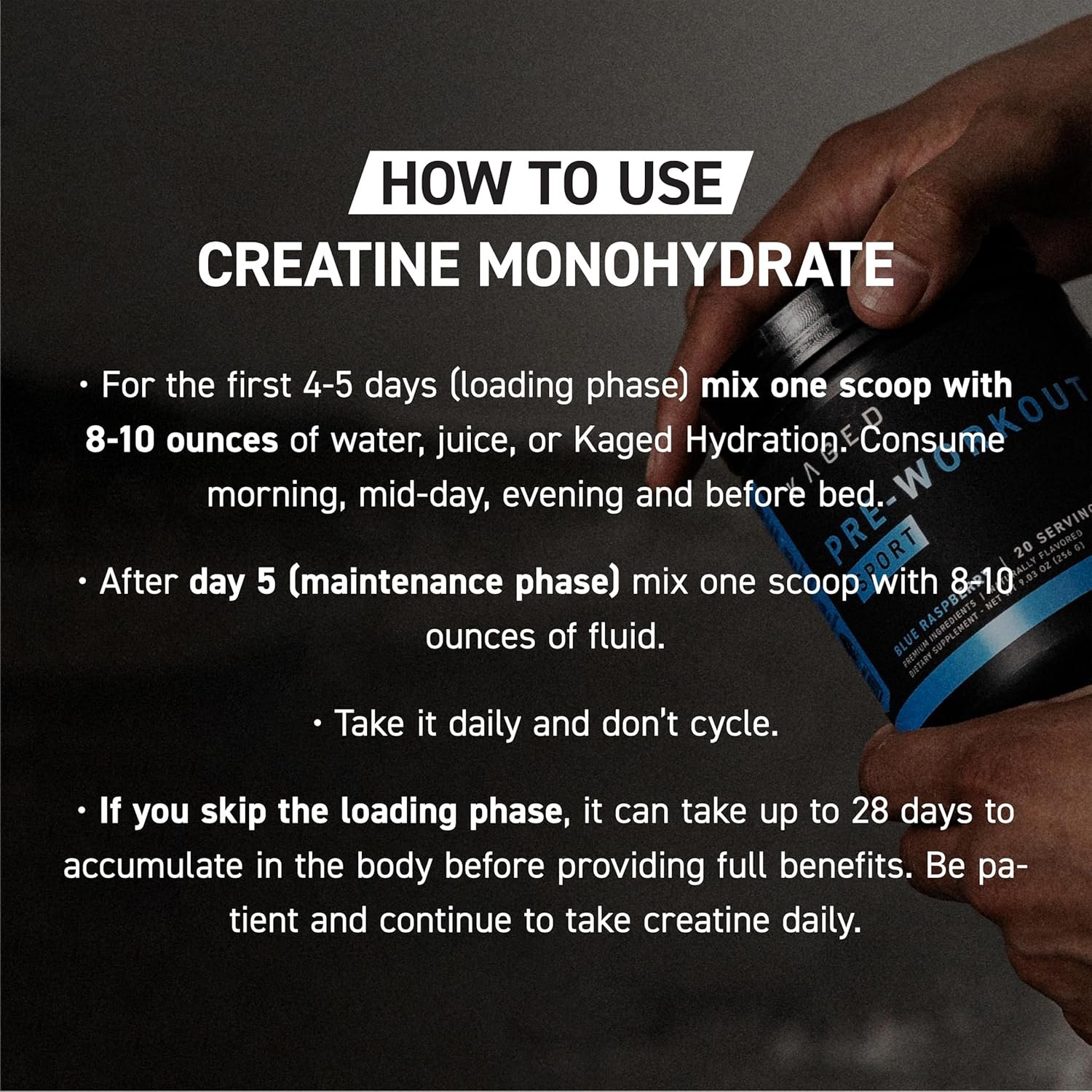 Between Set Recovery: Creatine Monohydrate is unmatched if you’re looking for a scientifically superior creatine powder to help improve training and performance. Creatine powders can help you regenerate muscular power and recover faster between sets, especially during heaving lifting sessions. Strength and recovery are key to hitting your training goals, and Kaged Creatine could make all the difference.