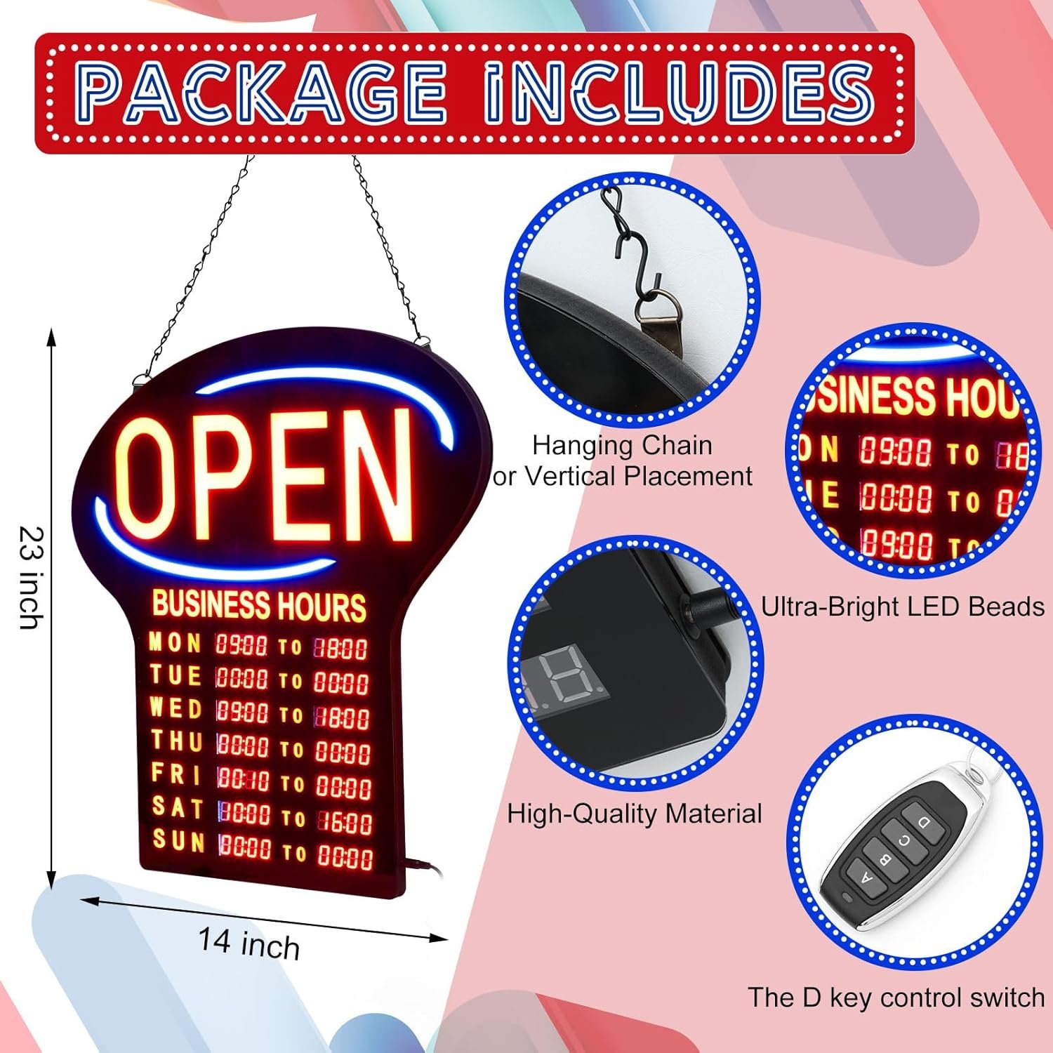 Kanayu LED Business Open Sign Large Electronic Programmable Store Hours Sign with Instructions, 23.6 x 16.7 x 0.8 inches, Red and Black