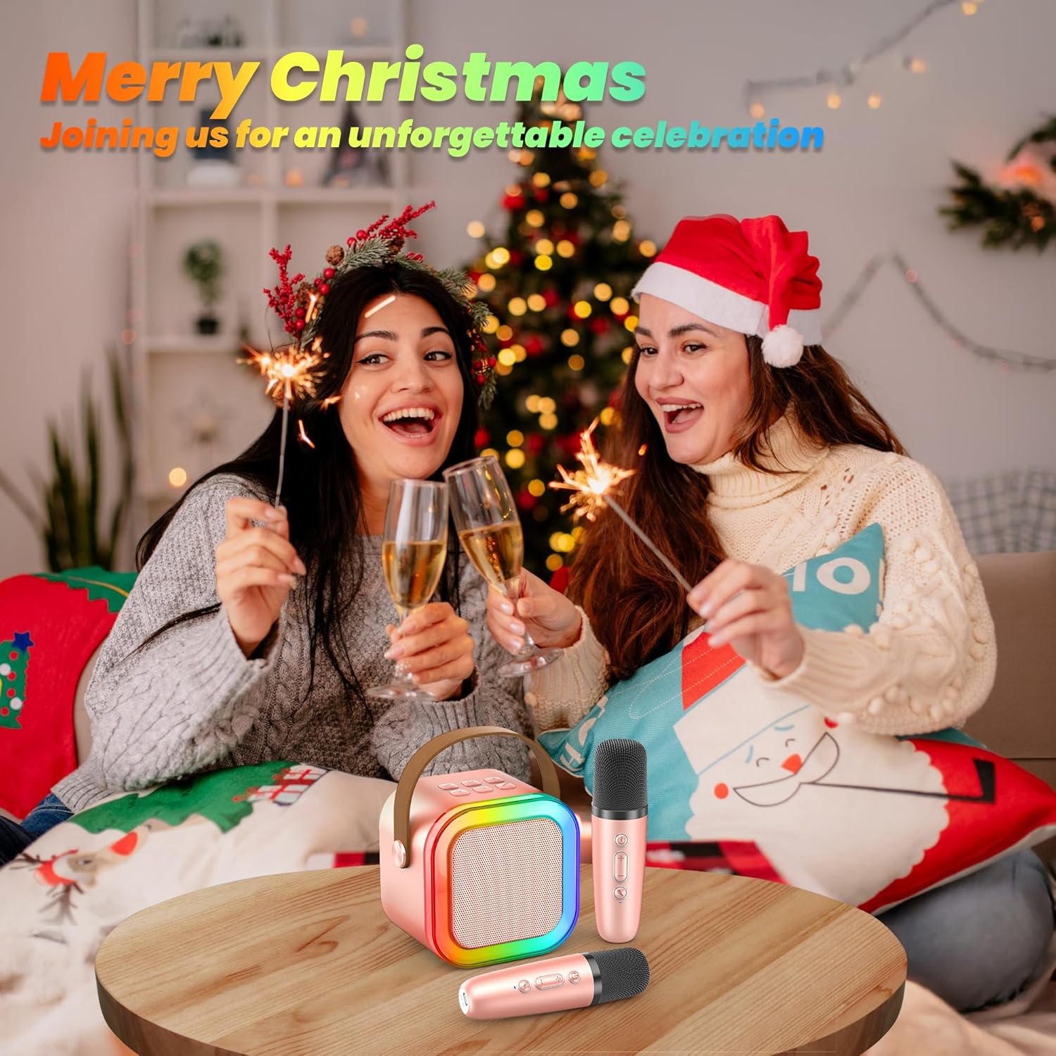 Karaoke Player, Karaoke Machine for Adults, Portable Bluetooth Mini Karaoke Microphone Singing Speaker Player with 2 Wireless Mic, All Smartphones,Birthday, Family,Home Party(Rose Gold)