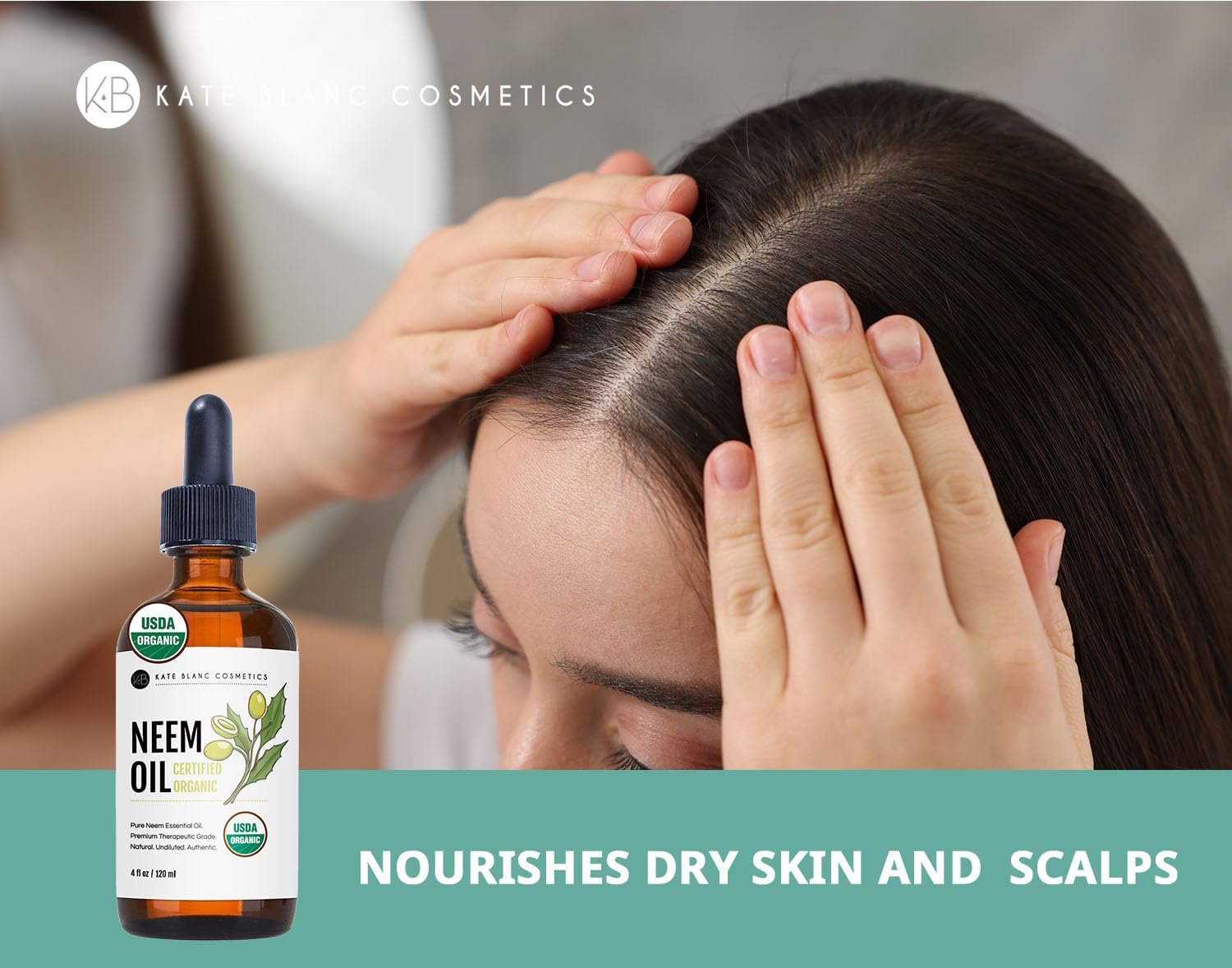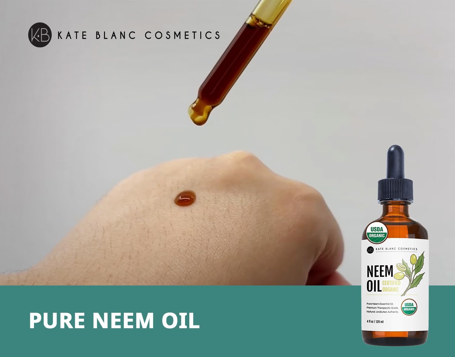 Kate Blanc Cosmetics Neem Oil for Skin, Hair & Face. Safe for Dog, Plants, Scalp (4oz, Organic, Cold Pressed, Concentrate)