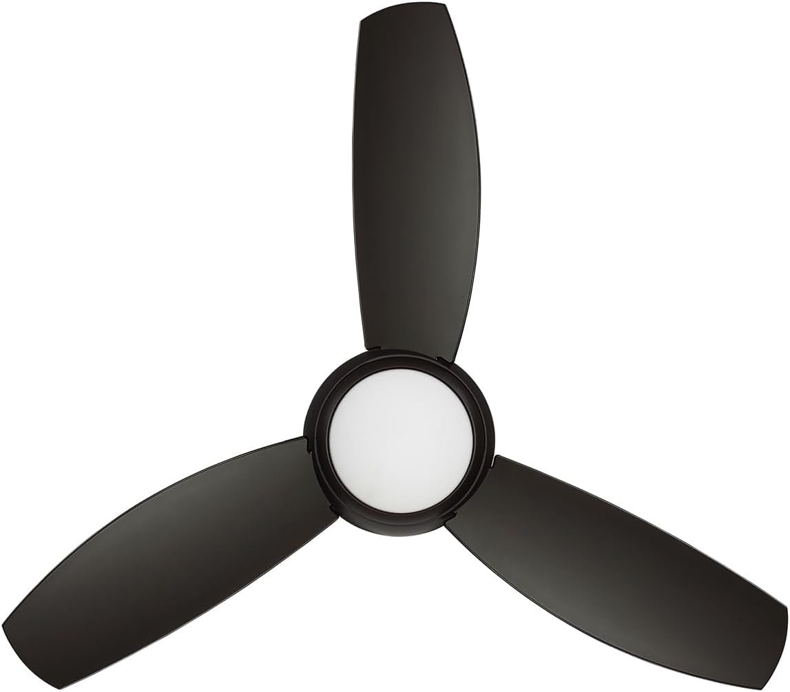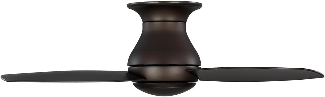 Enhance the airflow and elevate the style of any compact space with the kathy ireland HOME Curva Sky (CF144LORB) 44-Inch Modern Ceiling Fan. Both elegant and functional, it includes an integrated LED light fixture that provides efficient, long-lasting illumination, perfectly complementing the fan’s contemporary design. For added versatility, a removable no-light cover allows installation with or without the light. This fan’s powerful 153 mm x 18 mm motor and 12-degree blade pitch provide optimal airflow, keeping your space cool and comfortable. A 6-speed LED remote control with a wall-mounted bracket gives you full command over fan speed, light brightness, and direction reversal. The low-profile, hugger design makes this ceiling fan ideal for rooms with lower ceilings or where flush-mounting is preferred. With weather-resistant blades and a wet rating, it’s built for durability, perfect for both indoor use and outdoor areas like porches, patios, and decks. This sleek fan features three blades with a 44-inch span for smooth, efficient air circulation, making it an excellent choice for apartments and lofts. Finished in appliance white with opal matte glass, this flush-mount ceiling fan complements any modern aesthetic. The Curva Sky model is available in multiple finishes and sizes, with an RPM range of 80 to 250 and an impressive airflow capacity of up to 3800 CFM.