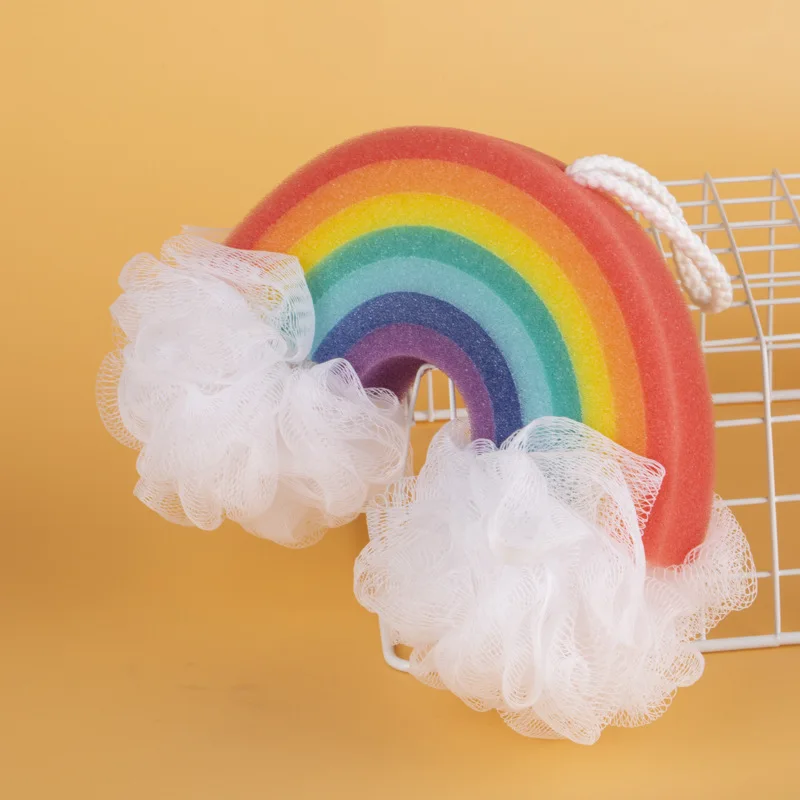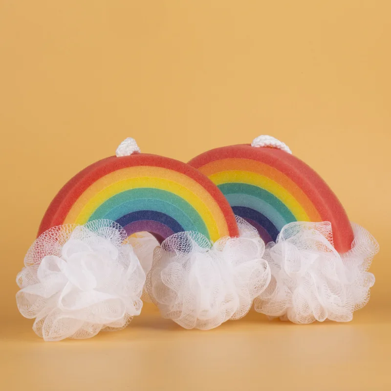 Kawaii Rainbow Bath Ball Soft Mesh Bubbler Sponge Baby Shower Wash Scrubber Cartoon Color Durable Body Massage Bathroom Brush