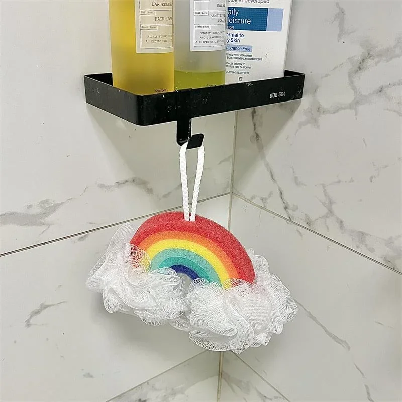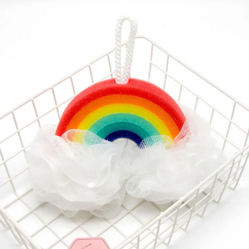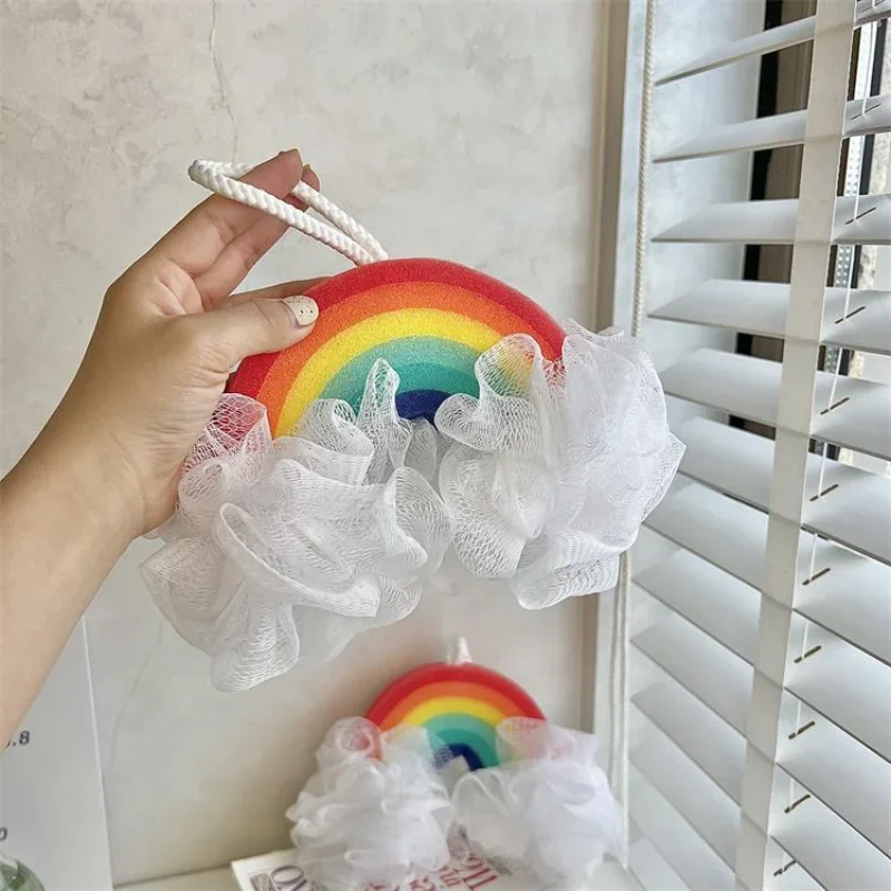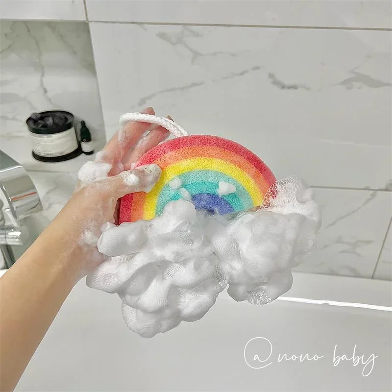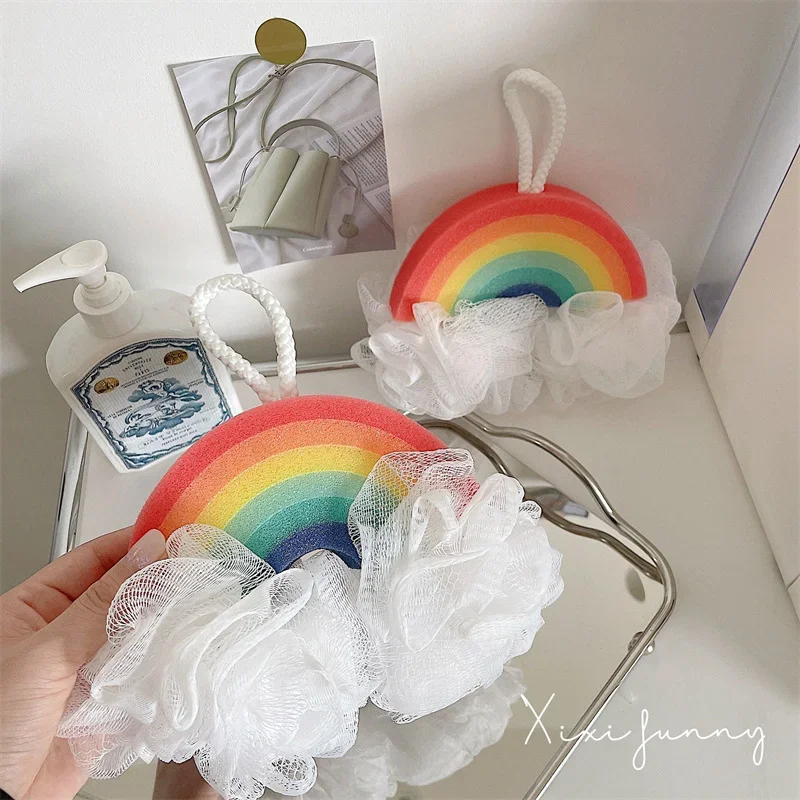 Kawaii Rainbow Bath Ball Soft Mesh Bubbler Sponge Baby Shower Wash Scrubber Cartoon Color Durable Body Massage Bathroom Brush