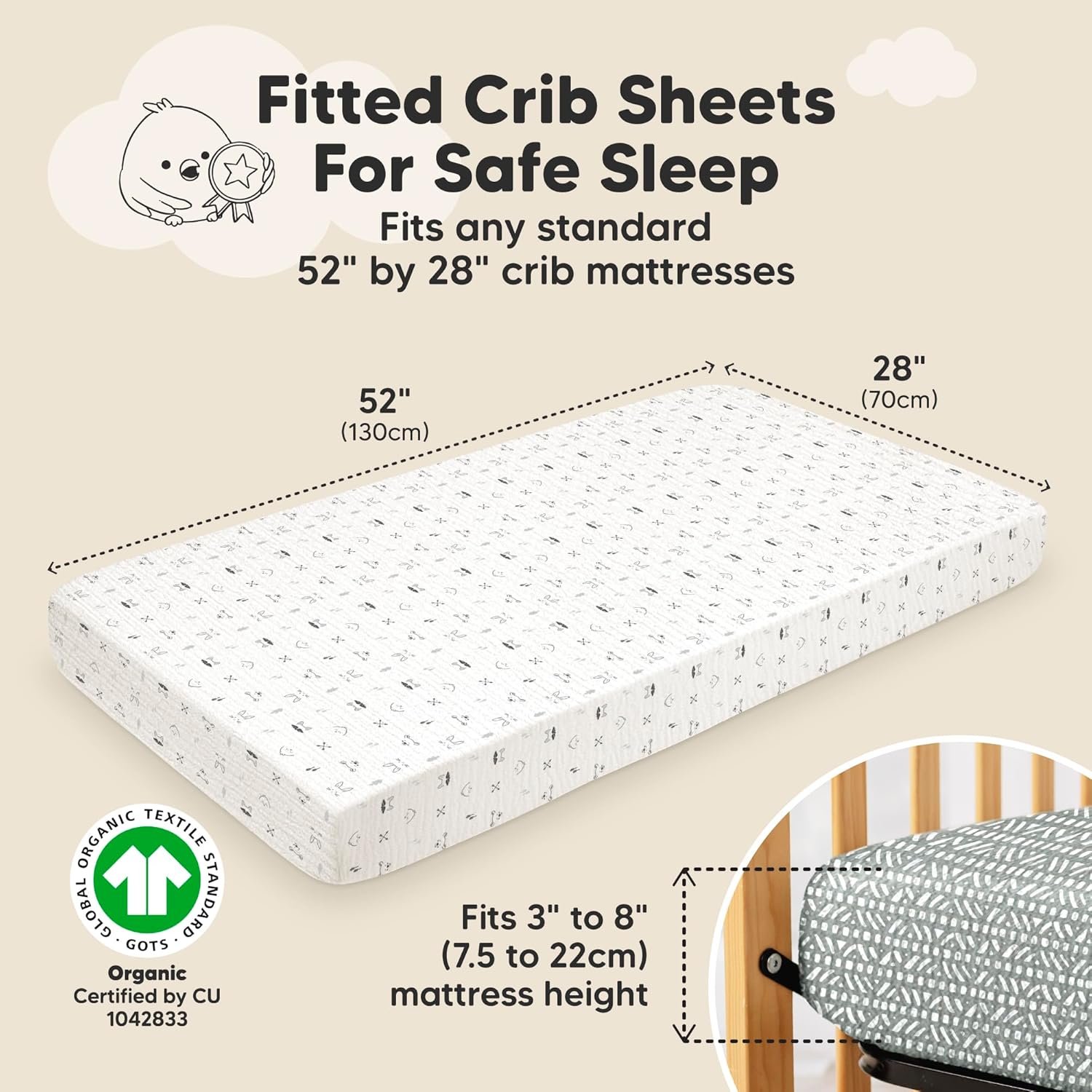2-Pack Fitted Crib Sheets Neutral – KeaBabies Lyra Muslin Crib Sheets for baby girls & boys are perfectly sized standard crib mattress sheets at 52″ x 28″ x 3-8″(height). These soft crib sheets are made with 100% organic cotton (GOTS-certified).