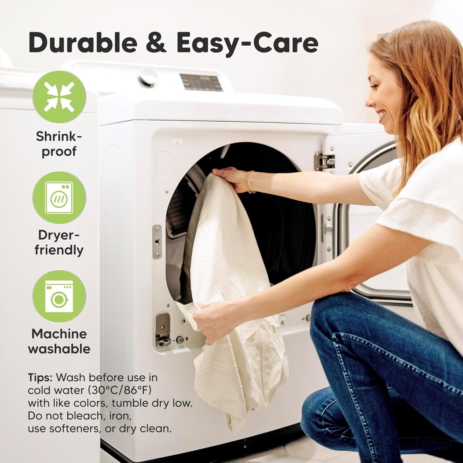 Machine washable, dryable, and shrink-proof. Wash cold and tumble dry low.