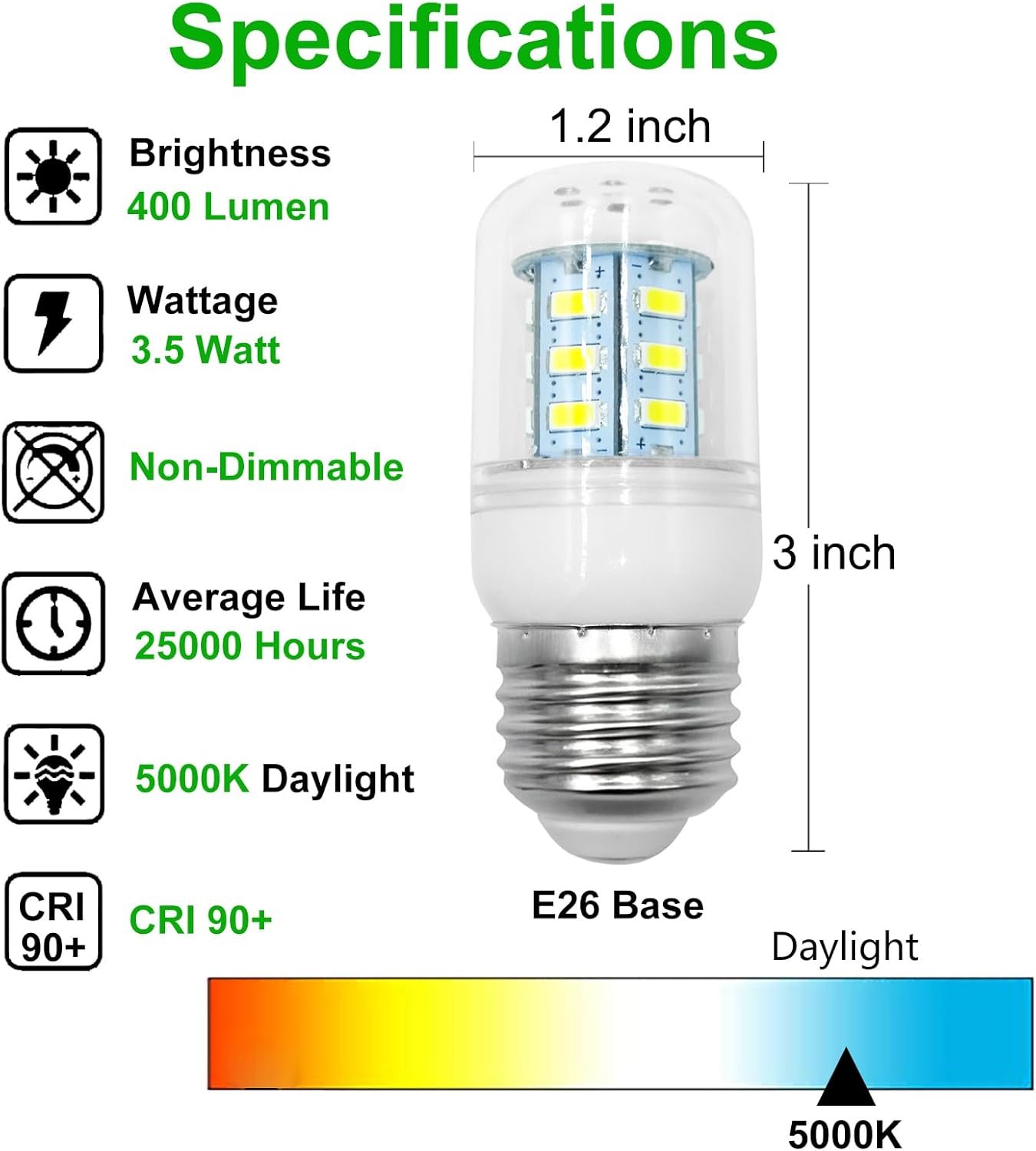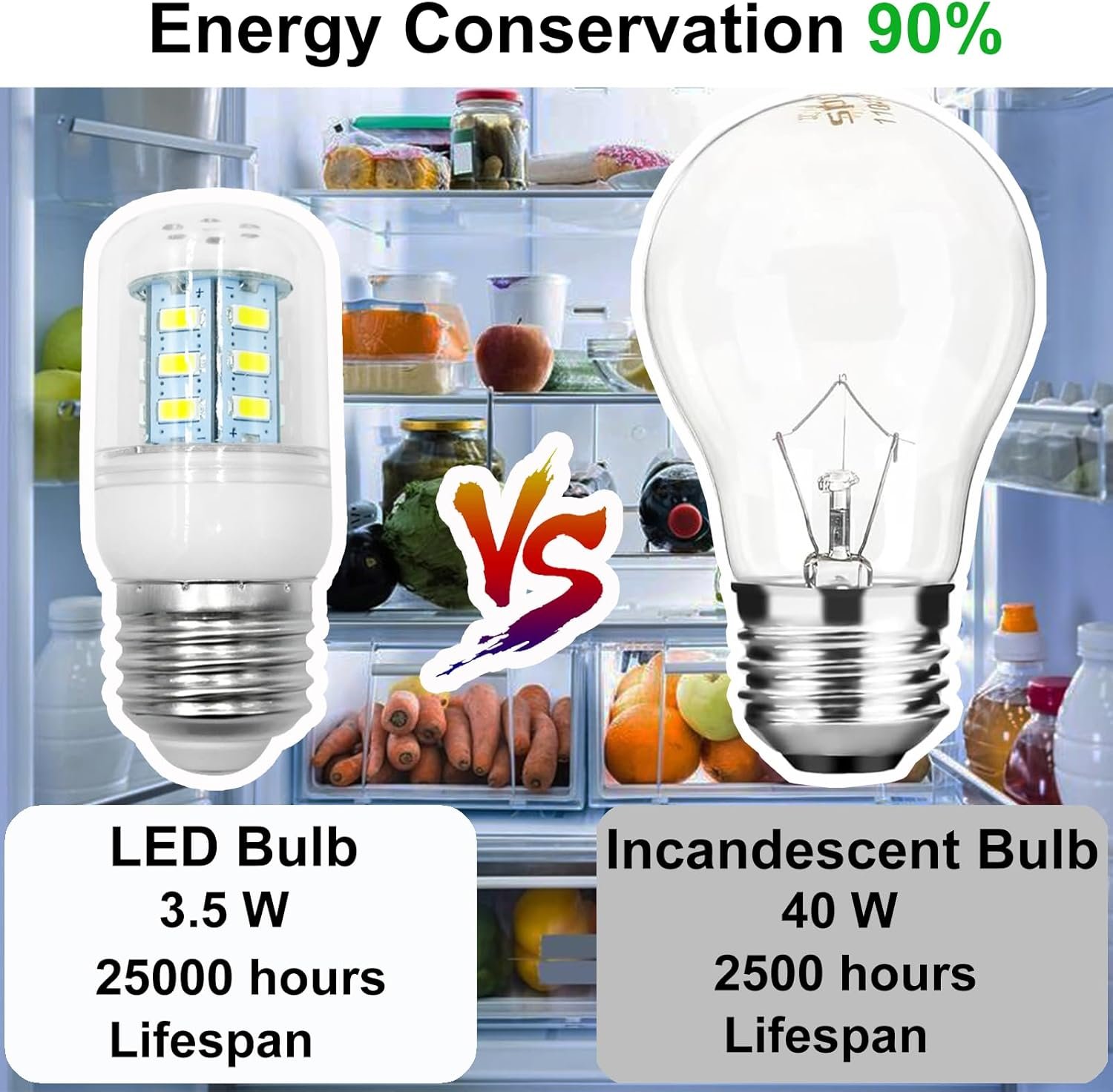 Energy-Efficient & Bright Lighting:This 3.5W LED refrigerator bulb provides 400lm of bright, 6000K white light, offering optimal visibility while saving energy compared to traditional bulbs.