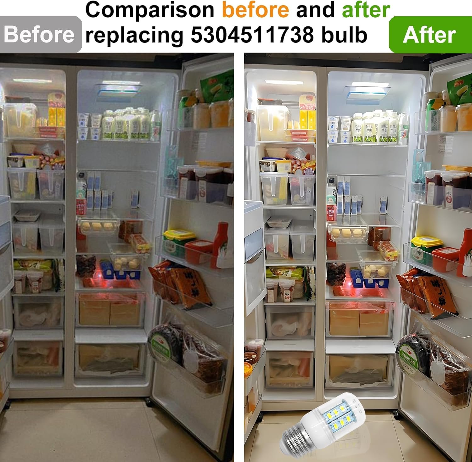 Easy Installation & Universal Fit:Featuring a standard E26 base and compact size (1.2” x 3” inches), this bulb is easy to install and compatible with a wide range of Frigidaire refrigerator models, including FFSS2615TD0, LFSS2612TP2, CRSE233TW0, and more.